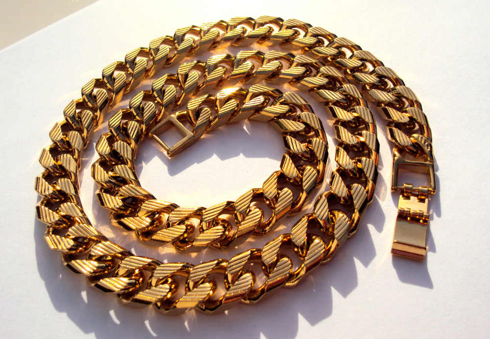 Campioni tipici per le catene da uomo d'oro sono 375, 585, 500 e anche 750 e 958, nella stragrande maggioranza dei casi, le gioiellerie offrono modelli 585 e 750.