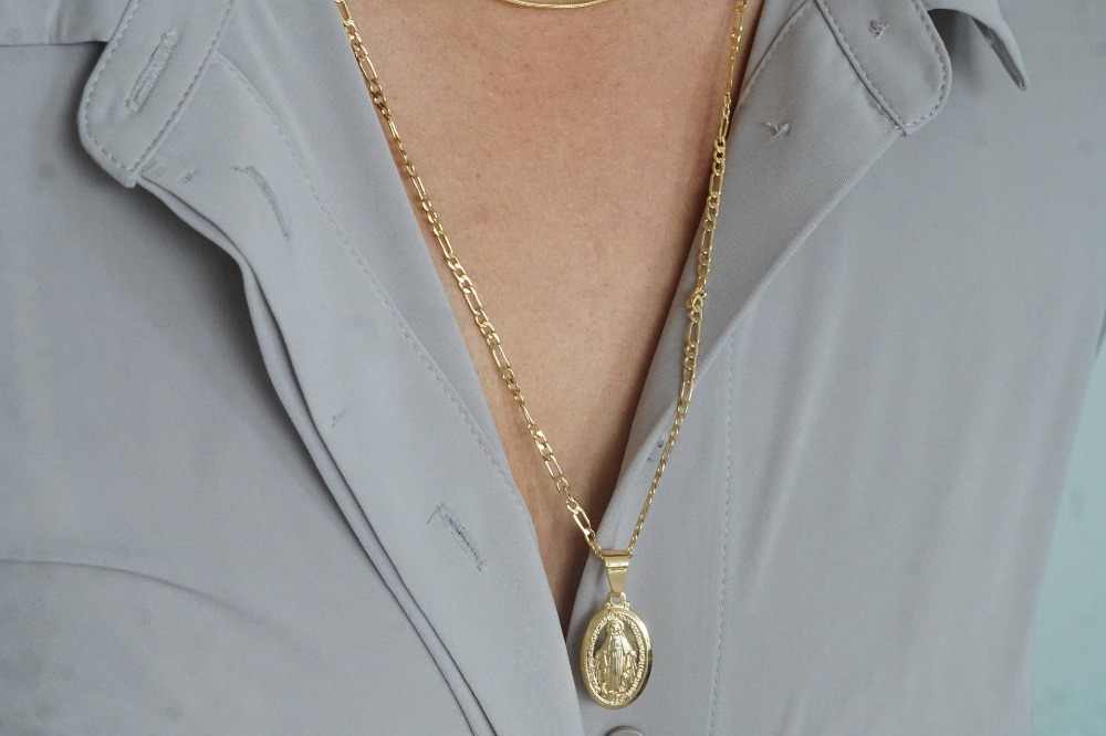 - amuleti e croci con motivi religiosi - tradizionalmente vengono indossati su catene allungate, nascoste sotto una maglietta e una camicia;