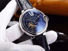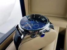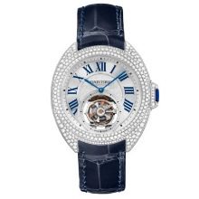 Questo modello (35 millimetri) è lo standard di lusso e raffinatezza. Materiali preziosi e diamanti sono stati utilizzati nella fabbricazione di orologi. I designer hanno decorato il quadrante rotondo con un tourbillon volante. Il cinturino blu scuro è in armonia con le lancette e il quadrante, realizzati nella stessa combinazione di colori.