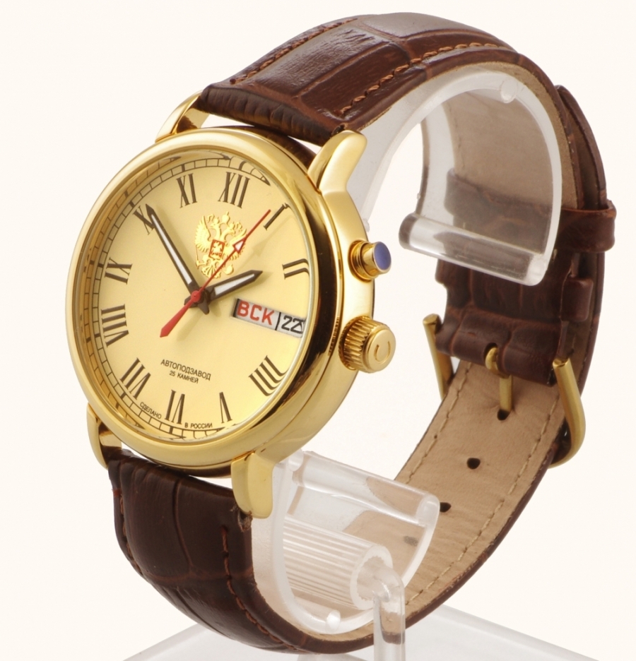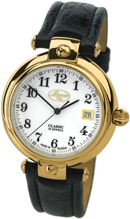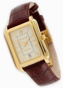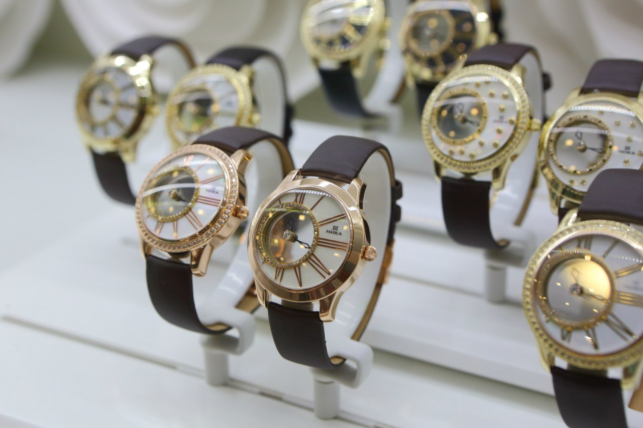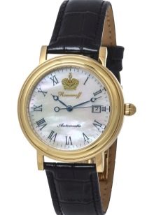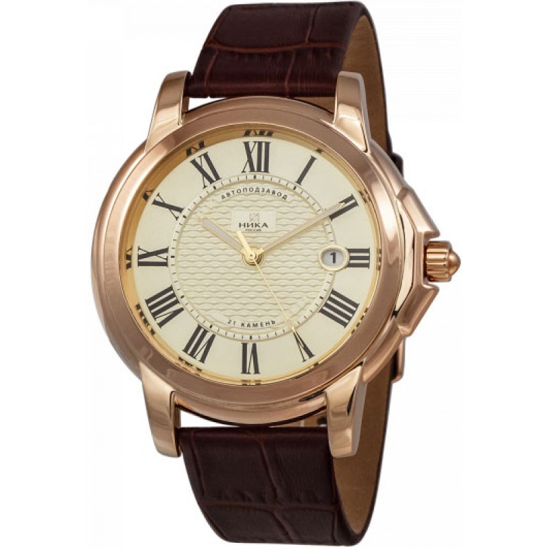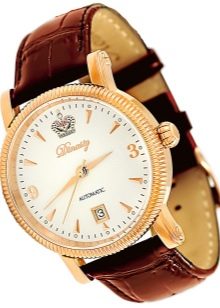 - "Nika" (1093.0.1.41A). Un elegante modello di orologio da polso da uomo, realizzato in uno stile classico ricercato. L'accessorio può adattarsi facilmente alla maggior parte dei look maschili. Ci sono 21 pietre nel meccanismo. La cassa è realizzata in oro rosso 585 di alta qualità.