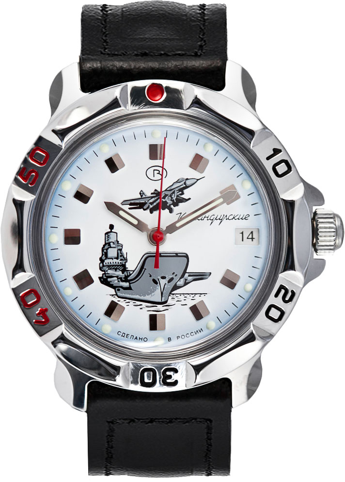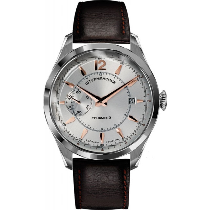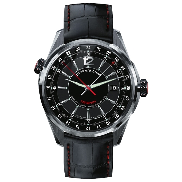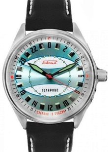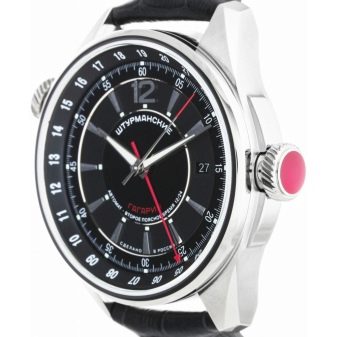 - "Shturmanskie" (2426-4571144). Uno spettacolare accessorio da uomo difficile da ignorare. Pratico, dotato di cassa tonda e cinturino in pelle di alta qualità. Ci sono 32 pietre nella meccanica. Il dispositivo è antiurto e mostra un secondo fuso orario.