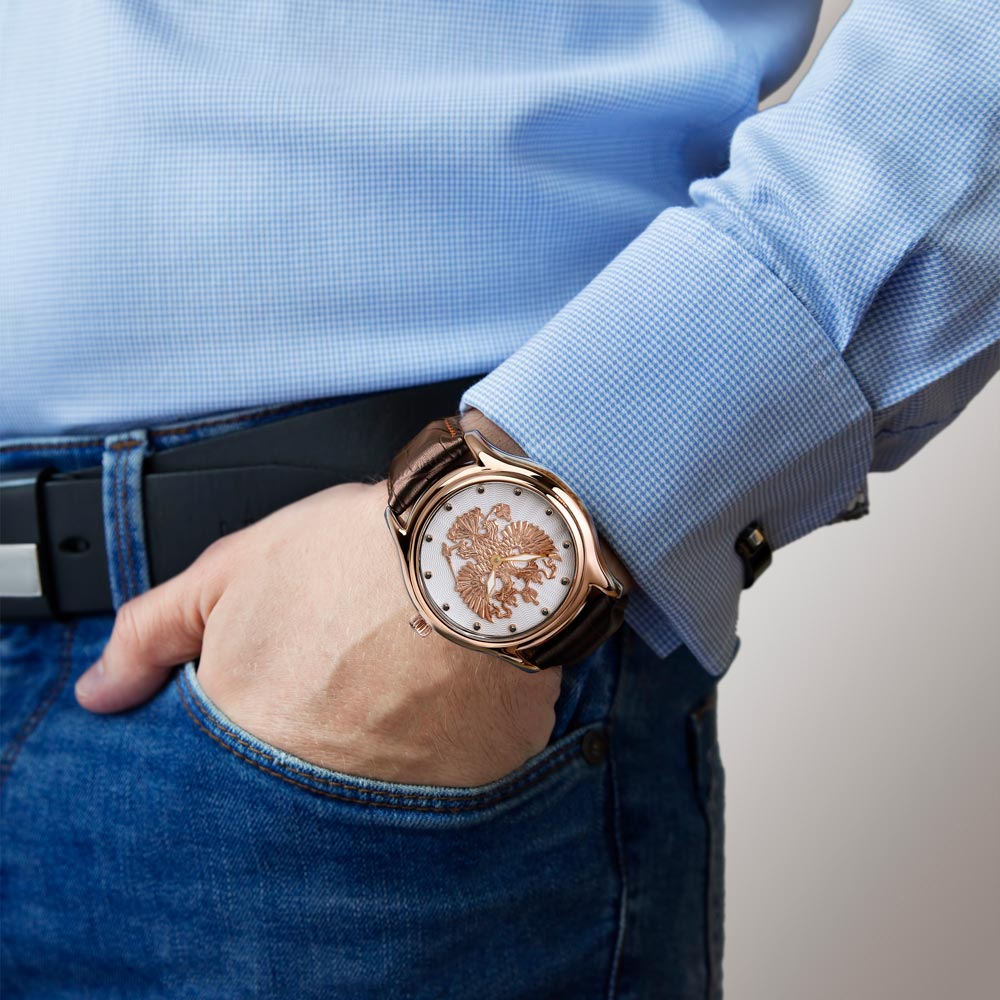 - "Gloria" (7023030 / 300-2427). Un bellissimo orologio meccanico da uomo che può essere un'aggiunta spettacolare a molti look. Edizione limitata (500 pezzi in totale). C'è una finestra con data e ora. Il meccanismo è composto da 25 pietre. Il cinturino è perforato.