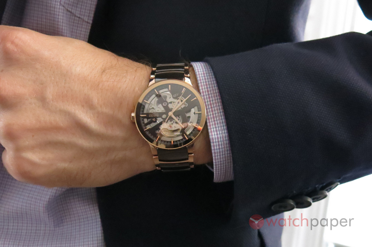 - Scheletro automatico Centrix - L'esclusivo quadrante scheletrato si abbina perfettamente al bracciale anatomico bicolore. Materiale di fabbricazione: acciaio inossidabile, vetro zaffiro senza rivestimento antiriflesso. L'orologio sembra enorme e attira immediatamente l'attenzione. Il quadrante ha tre lancette: ore, secondi e minuti. Prezzo da 133.000 rubli.