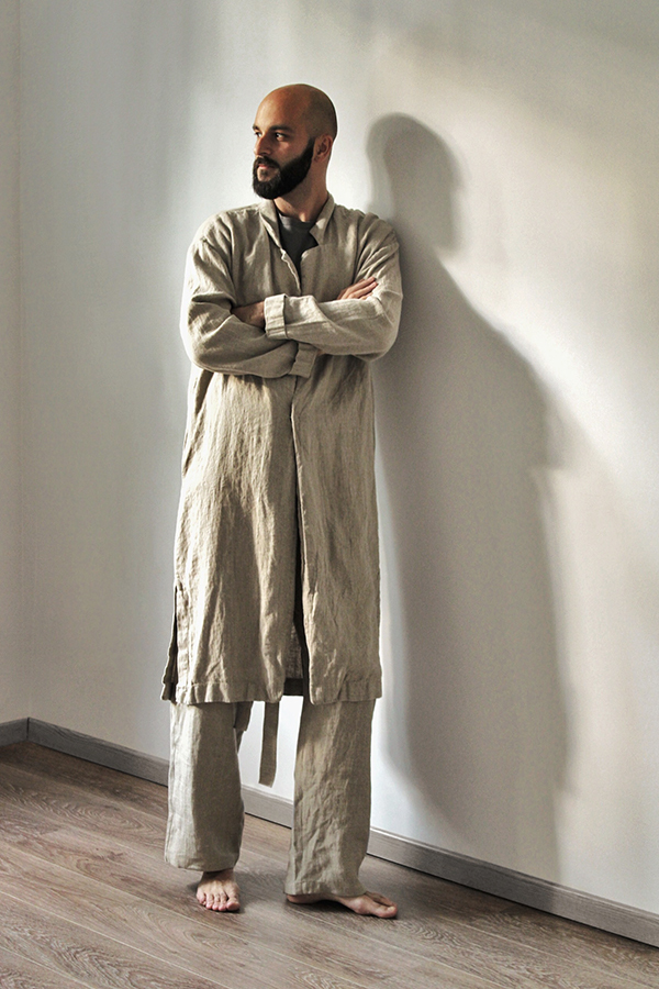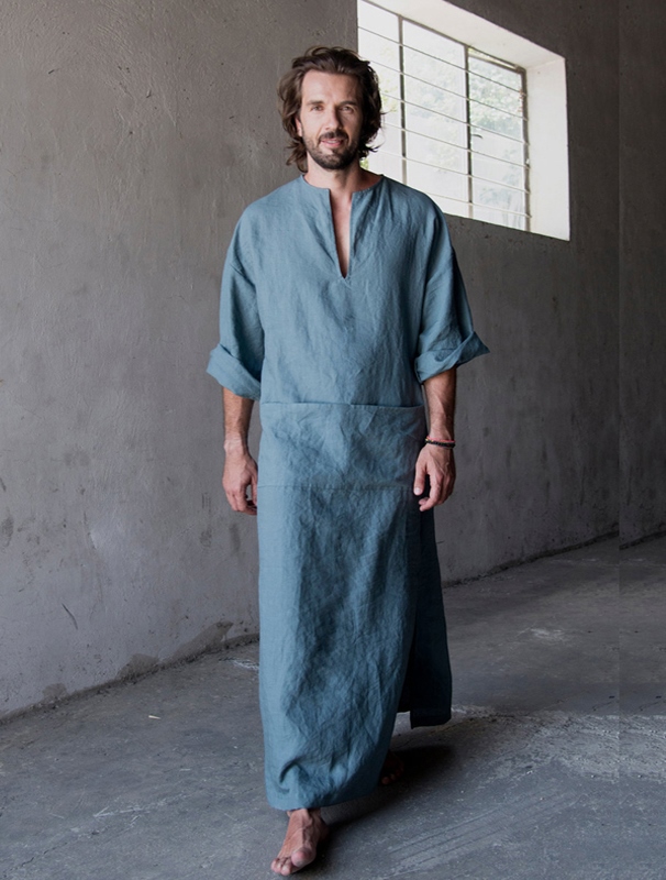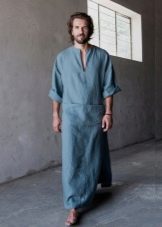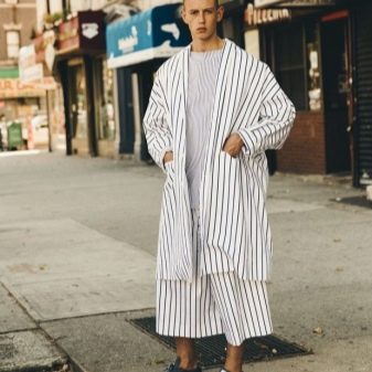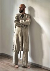 - Strada. La moda per lo stile del lino ha portato al fatto che anche gli abiti da uomo hanno iniziato a essere realizzati in un design che consente loro di uscire di casa. Ad esempio, un cappotto di questo taglio realizzato in pratica flanella o velluto è consigliato da indossare in duetto con pantaloni slip-on. Una vestaglia leggera in cotone o lino può essere facilmente abbinata a jeans leggeri o pantaloncini, una semplice T-shirt.
