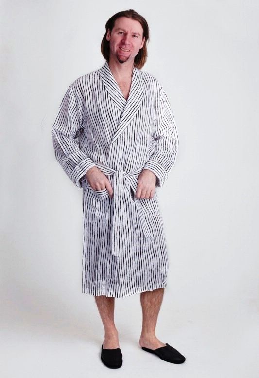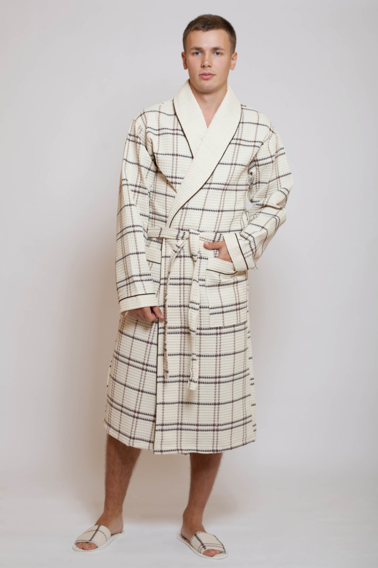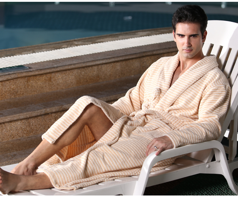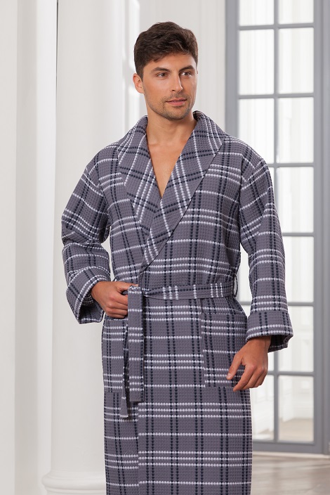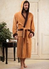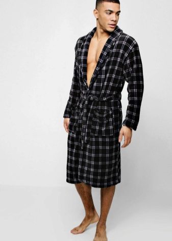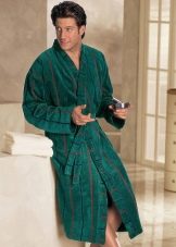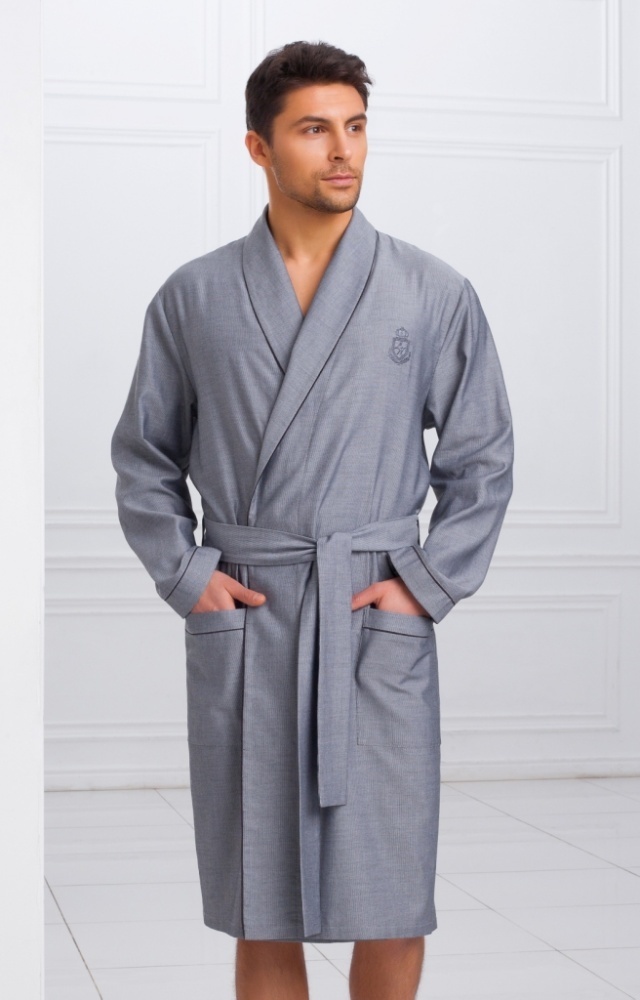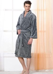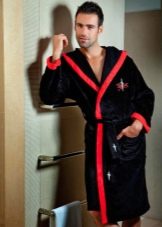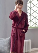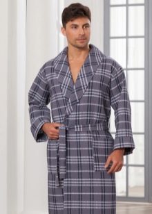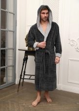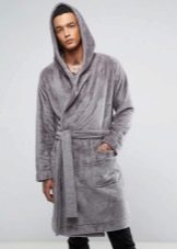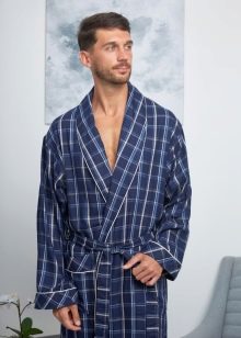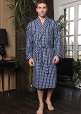 - Età e caratteristiche della figura. La lunghezza ottimale della veste è fino alla linea del ginocchio o leggermente al di sotto. Gli uomini più giovani possono indossare capi più corti, a volte integrando il pigiama o la biancheria intima. Gli abiti lunghi sono adatti a persone alte, per il resto è meglio attenersi all'opzione al centro della parte inferiore della gamba. Se c'è un'area problematica nell'area della vita, è meglio evitare tasche ingombranti o inserti di colore accento in quest'area.