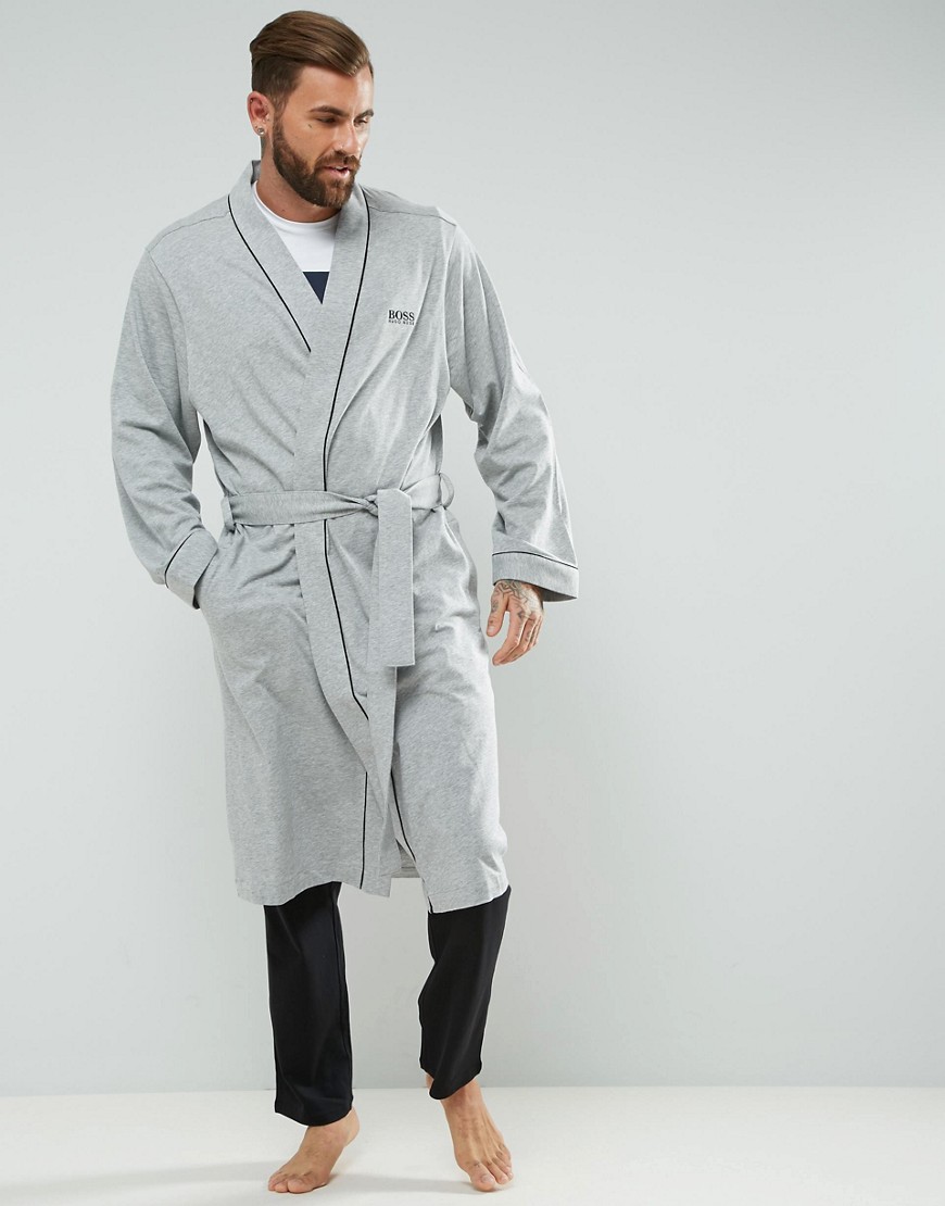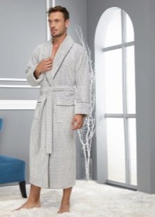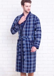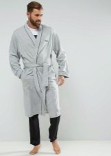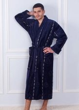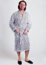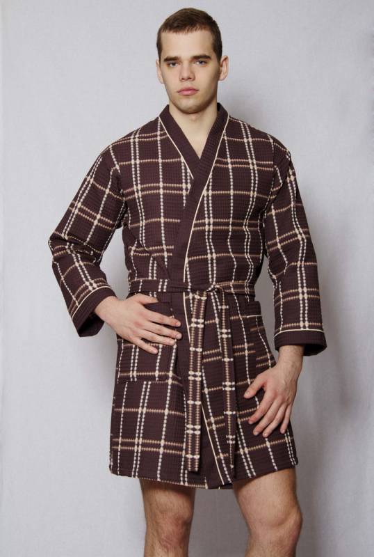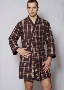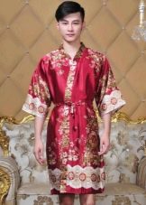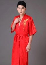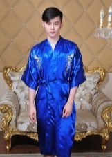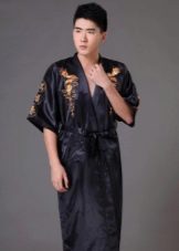 - Kimono. Gli abiti da uomo in stile giapponese sono molto popolari tra il sesso forte. A casa, può essere di seta lunga o corta, bianca, realizzata in tessuto waffle denso. La seconda opzione sembra piuttosto maschile e nel taglio ricorda l'abbigliamento per la pratica delle arti marziali.