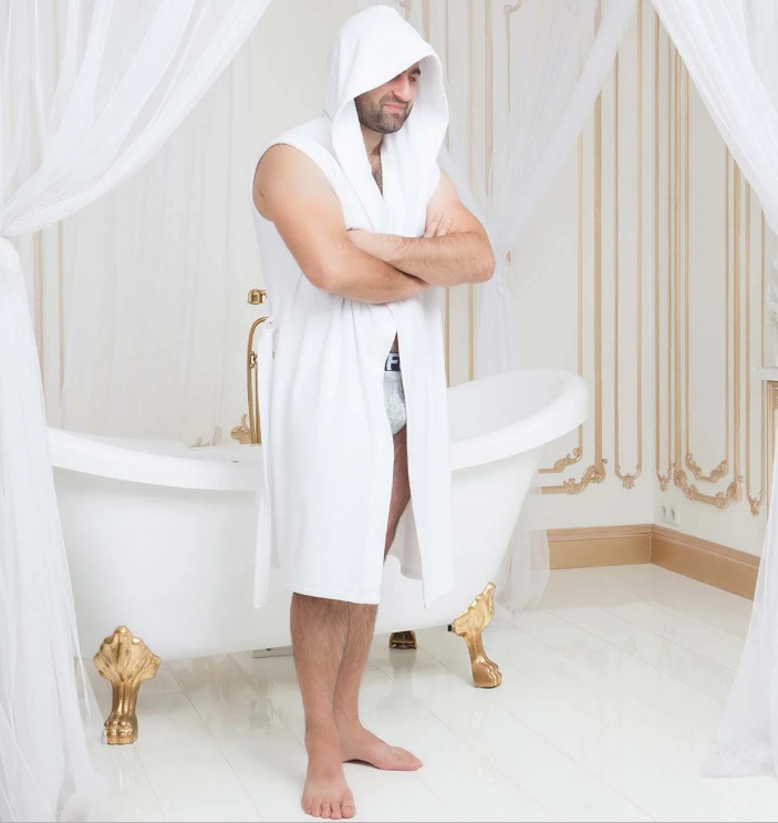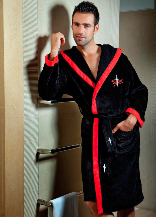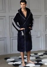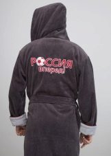 - Gli sport. Tali modelli di accappatoi sono facili da distinguere per il cappuccio voluminoso, la presenza di toppe e loghi sportivi. L'uniforme da boxe è tradizionalmente più corta, raggiungendo la metà della coscia. Gli abiti leggeri di questo tipo sono spesso realizzati in fibra di bambù: ipoallergenici, leggeri, con un pronunciato effetto battericida.