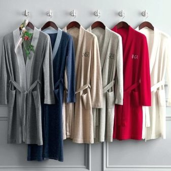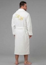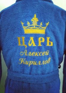 La principale varietà di soluzioni di design nel caso delle vestaglie è associata alla differenza nella lunghezza della pila e alla sua presenza, nonché nell'uso di elementi decorativi aggiuntivi. Per esempio, Le vestaglie con nome con ricami sono recentemente diventate di moda: un vestito del genere può essere presentato come regalo... Le opzioni abbinate in un colore con un'iscrizione nello stile generale vengono presentate agli sposi o ai familiari nel loro anniversario di matrimonio. Una vestaglia in velluto personalizzata di lunghezza classica è un'opzione di presentazione completamente neutra per un capo o un collega.