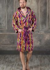 Tra le stampe utilizzate nella produzione di abiti, l'opzione più popolare è il plaid scozzese. Viene anche utilizzato nella produzione di accappatoi in cotone waffle, nella creazione di prodotti in spugna di bambù e tessuti misti. È anche rilevante una striscia orizzontale, utilizzata in una delle parti del prodotto: in vita, cintura, petto. Molti modelli oggi utilizzano elementi di rifinitura a contrasto del colletto o del cappuccio, polsini.