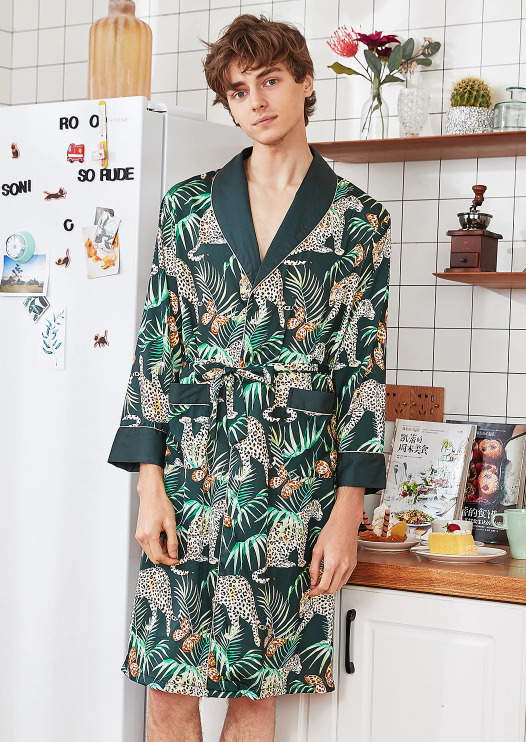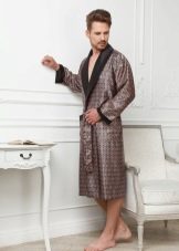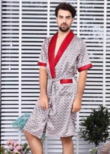 - Estate sottile. Gli abiti leggeri in Russia non sono ancora molto popolari a causa della somiglianza dei loro materiali con le controparti femminili. Ma con la giusta scelta di colori e stili, i modelli in seta, raso o cotone sono abbastanza in grado di diventare il componente principale del guardaroba domestico di un uomo nella stagione calda. Il loro taglio prevede la presenza di un odore sul petto, ampi revers, colletto. La lunghezza ottimale è considerata fino alla metà del ginocchio o leggermente più alta.