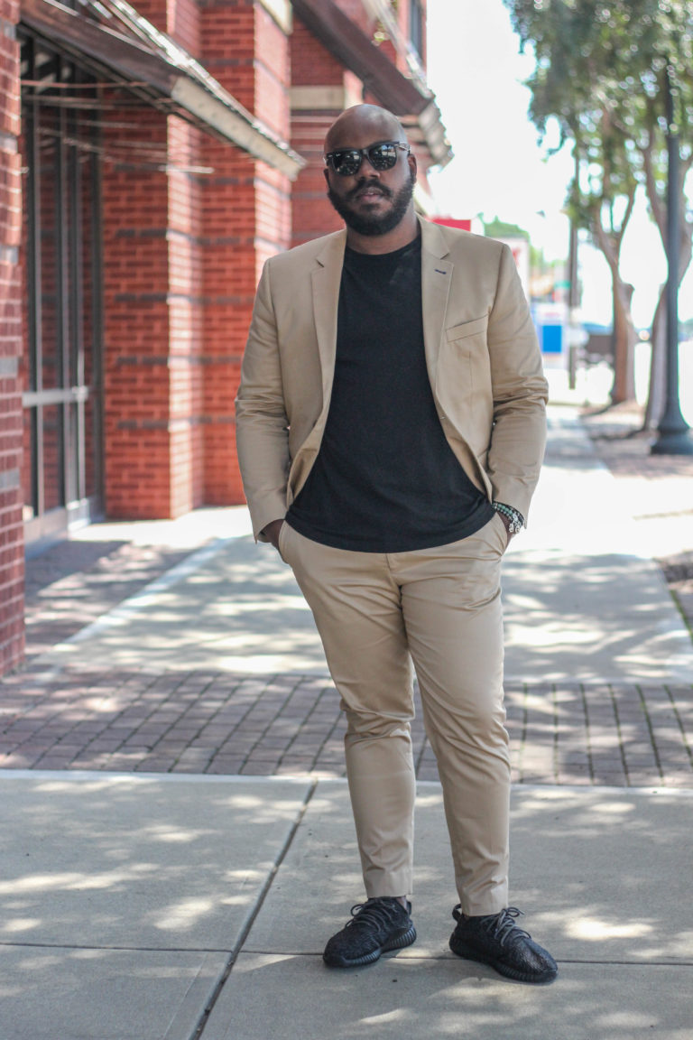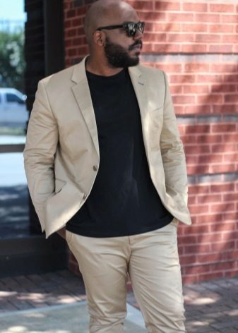 Indossare i vestiti giusti dovrebbe cambiare l'impressione visiva di te come persona molto grande nell'impressione di essere semplicemente grande. Un'ottima opzione è indossare una maglietta con una giacca sportiva. Sottolinea perfettamente la silhouette.