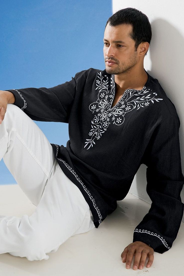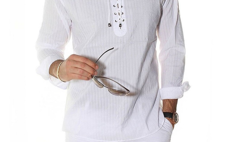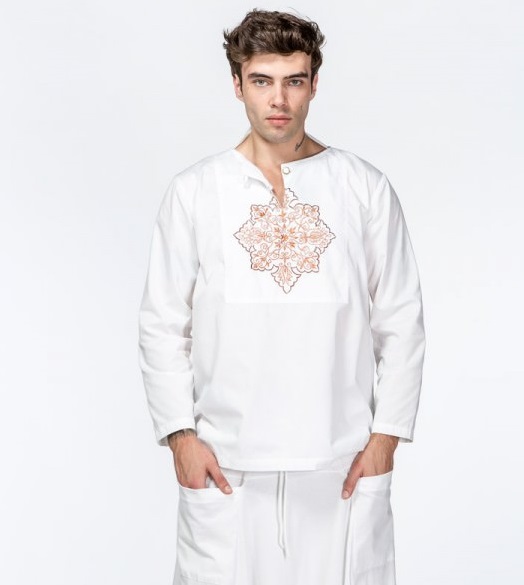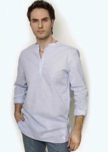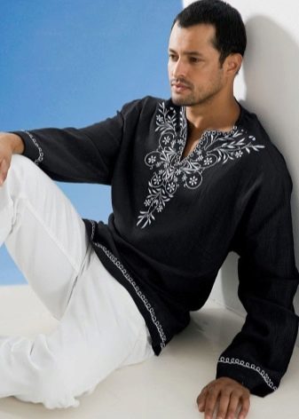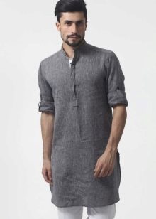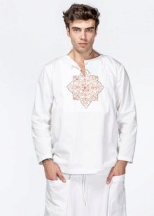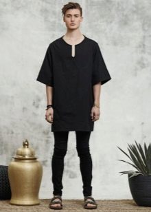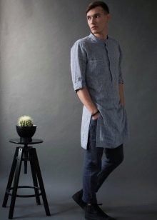 Un uomo in una cosa del genere sembra elegante ed elegante. La tunica può avere diversi elementi sartoriali, di taglio e decorativi. Può essere lungo o non molto lungo, con maniche corte e lunghe o con cappuccio, può essere decorato con ricami, situati principalmente sull'orlo o sulla scollatura.