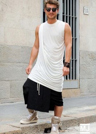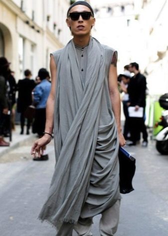Il mercato moderno offre modelli interessanti realizzati in stile greco. Sono abbastanza democratici, presentati in vari colori e stili. Possono essere di media lunghezza o piuttosto lunghi. A volte come decorazione viene utilizzato un cinturino in pelle o un tipo speciale di cintura. In una tale tunica, ogni uomo sembrerà elegante e casual.