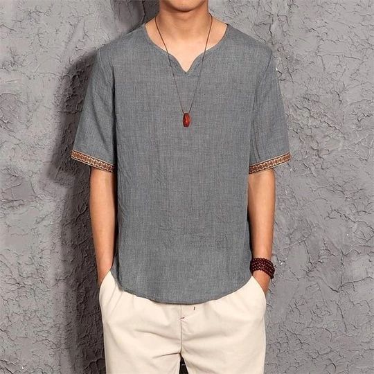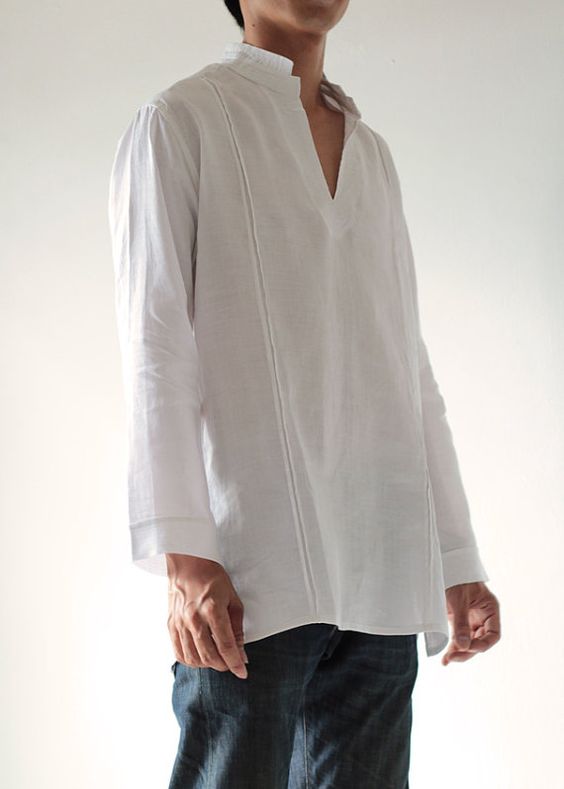 Queste tuniche da uomo sembrano molto sofisticate. Devo dire che differiscono dagli altri. Il prodotto ha drappeggio verticale nella parte anteriore.