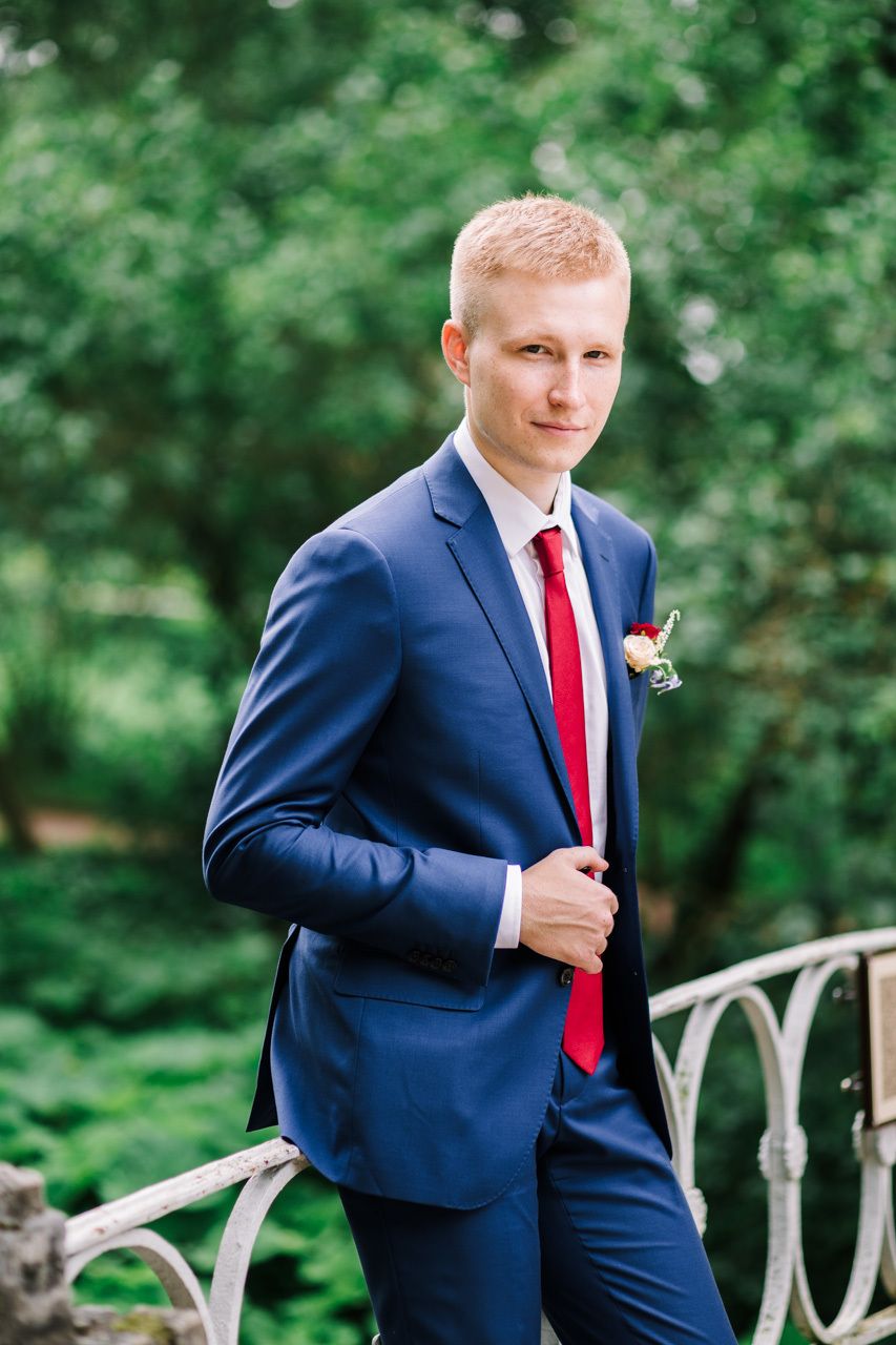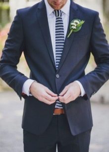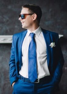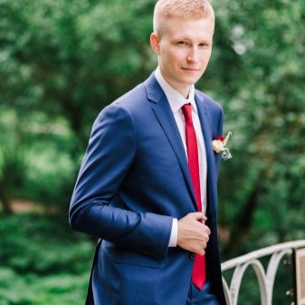 - Per eventi e celebrazioni eccezionali, è possibile rinunciare alle funzionalità classiche. Qui, il costume può essere più luminoso e il suo taglio più informale. E gli accessori in questo caso giocano uno dei ruoli importanti. Ad esempio, le spose scelgono i vestiti dello sposo per abbinarli al loro vestito e usano il colore della celebrazione per una cravatta, una sciarpa e una camicia.