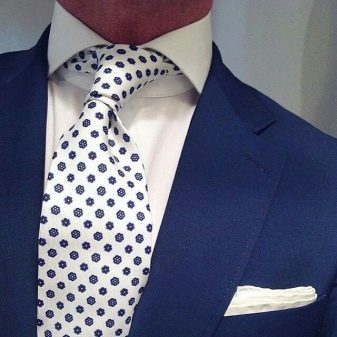 Una vittoria per tutti - camicia bianca e cravatta scura con un motivo chiaro a contrasto. Questa combinazione è sempre appropriata e sembra solenne. Questa è una buona opzione sia per il lavoro che per un evento pubblico. Come sfondo, le camicie leggere faranno risaltare favorevolmente quasi tutte le cravatte.