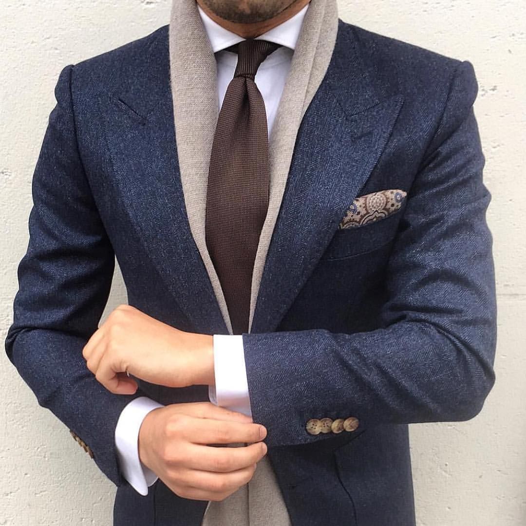Queste cose si rivelano davvero solo nella combinazione completa di tutti i dettagli dell'immagine: un abito, una camicia, una cravatta, una sciarpa e persino dei calzini.