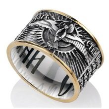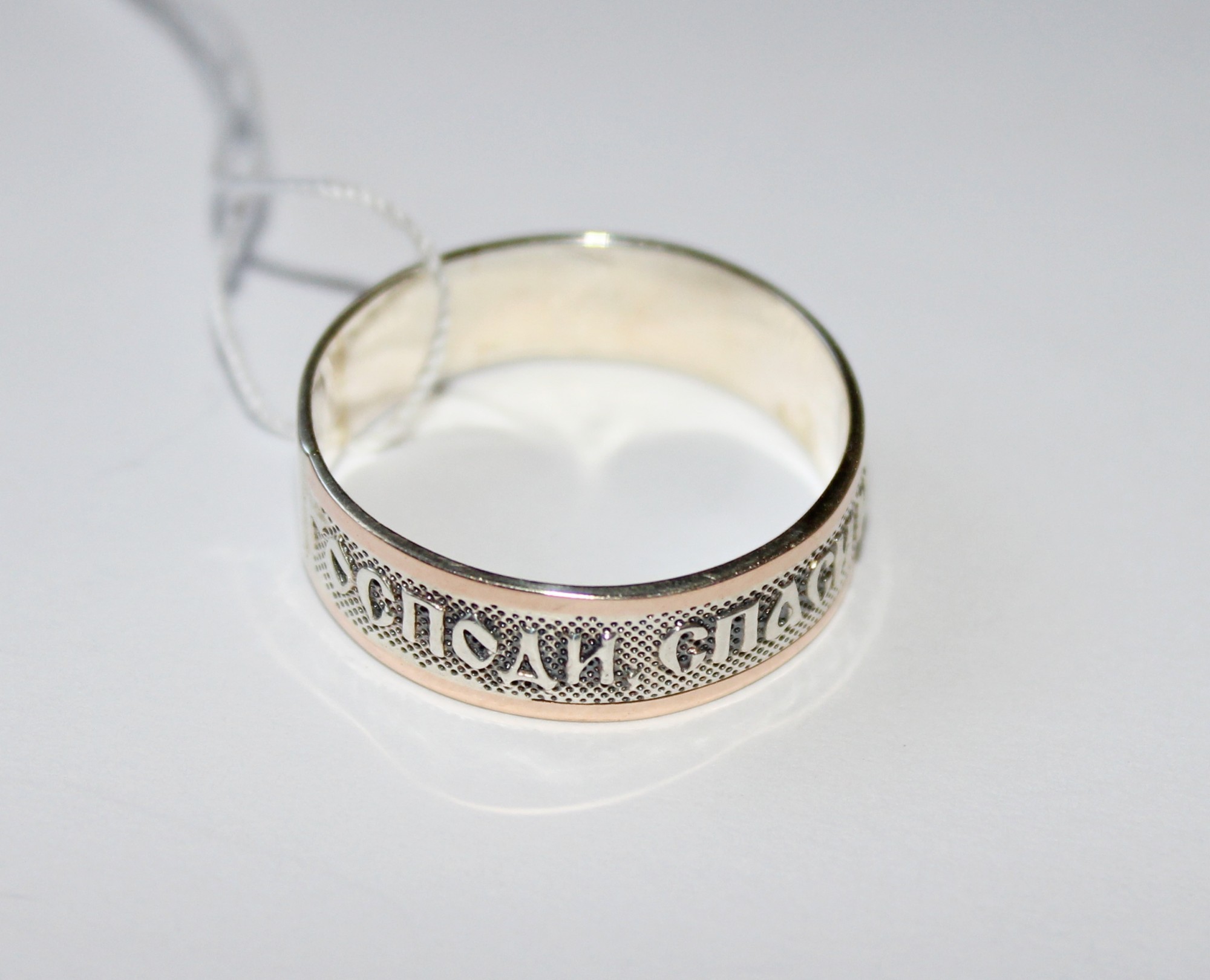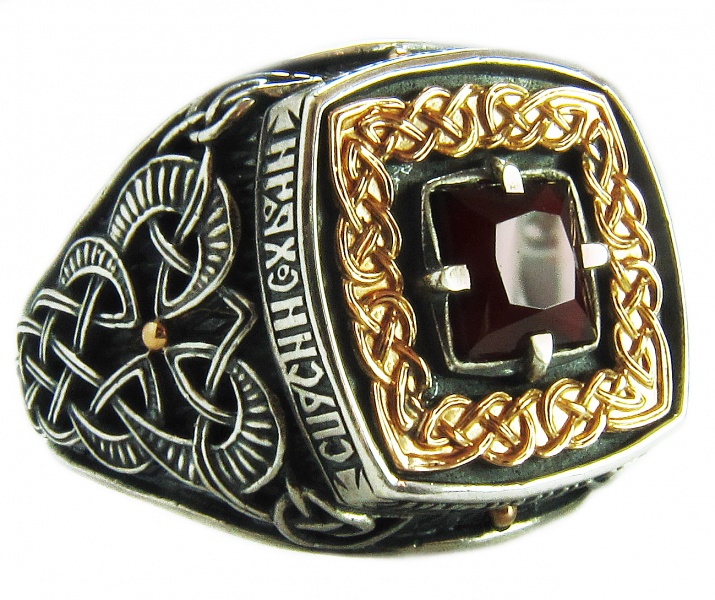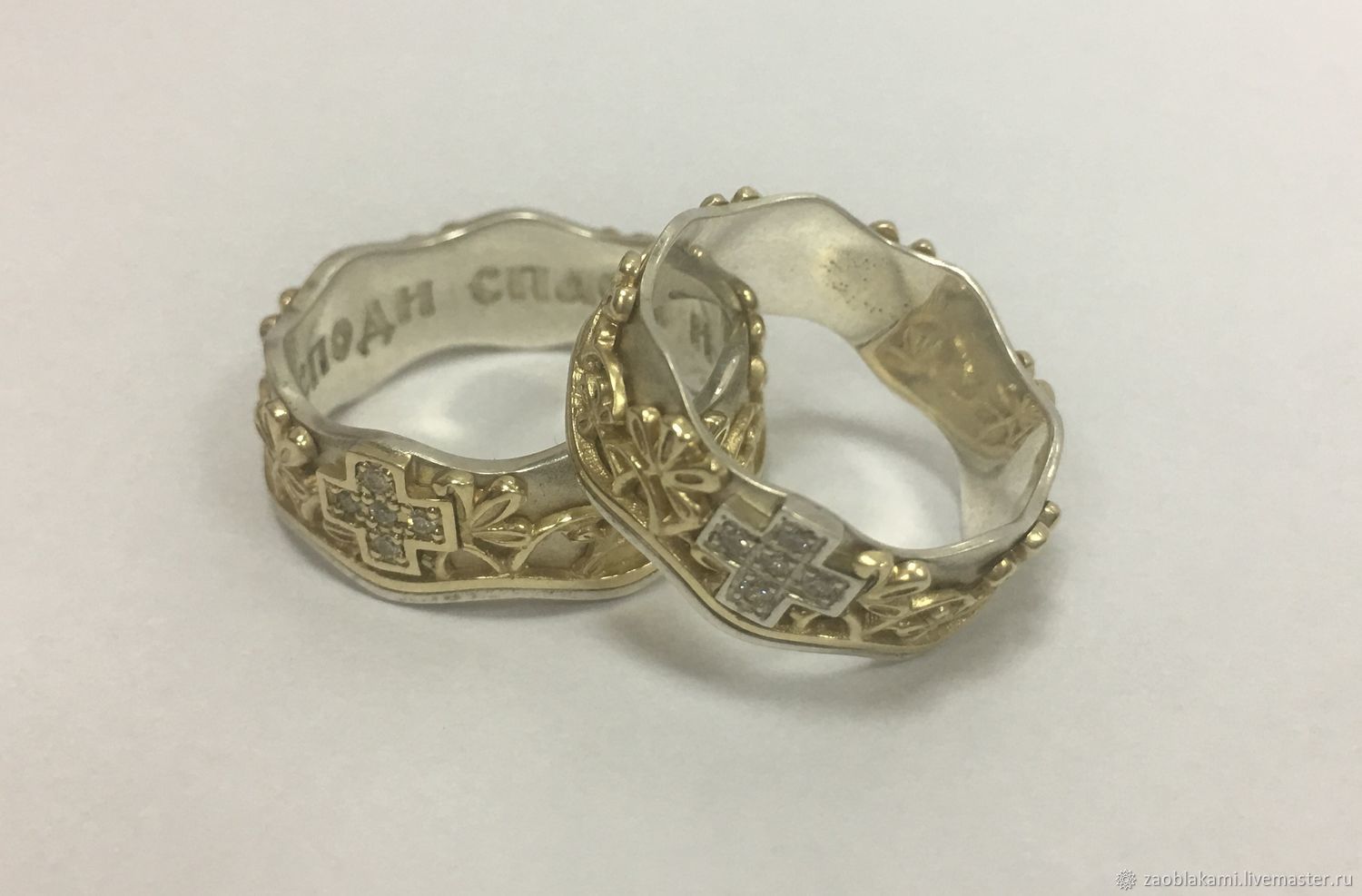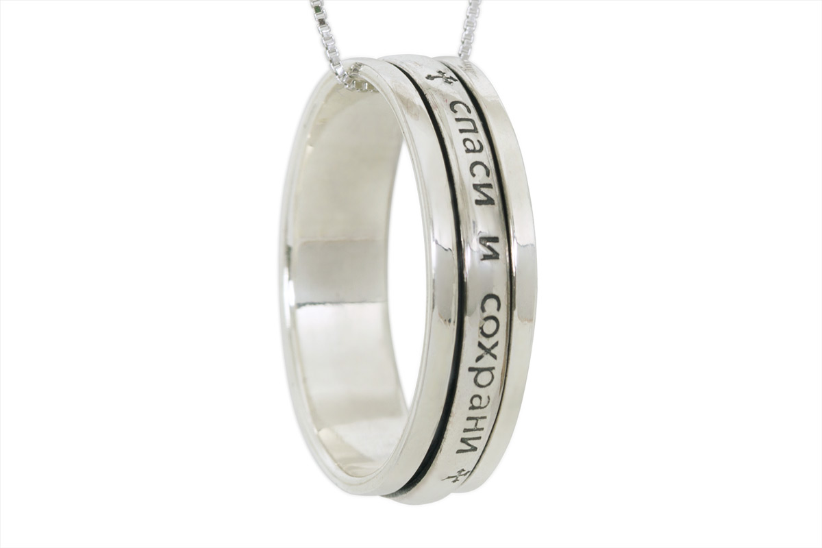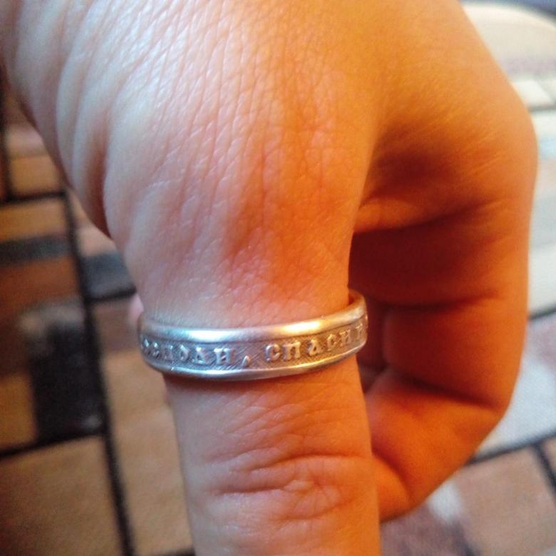 Decorazione con la frase "Salva e conserva" lungo il bordo, come appello al volto dell'Onnipotente... Queste due parole rappresentano una potente forza dell'Ortodossia, paragonabile anche a croci e amuleti indossati. A volte, in una situazione difficile, un'iscrizione indirizzata a Dio aiuta a fare la scelta giusta. Oggi, gli anelli "Salva e conserva" per gli sposi sono particolarmente apprezzati.... Come simbolo di lealtà e sentimenti leggeri, devozione e protezione della famiglia. Alcune persone acquisiscono tali anelli per enfatizzare i loro sentimenti religiosi, il coinvolgimento nella grande fede ortodossa.