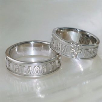 Per realizzare anelli con significato ortodosso, l'argento viene spesso scelto. Sono richiesti anche anelli realizzati con materiali combinati: argento e oro. Pertanto, non dovresti cercare una combinazione esotica di metalli. Oltre all'incisione con le preghiere, puoi acquistare un amuleto d'argento per te stesso con calcolo... Ci sono modelli non solo con zirconi, ma diverse opzioni per inserti semipreziosi e preziosi.