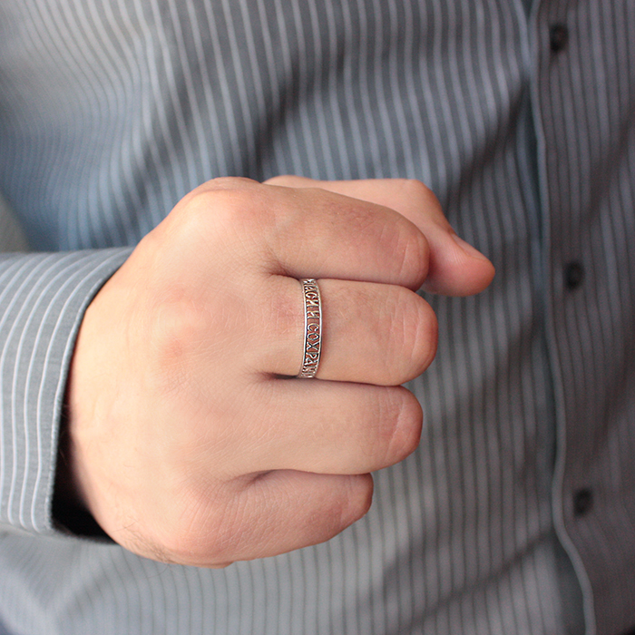 Il testo sull'anello dovrebbe essere rivolto verso il proprietario in modo che sia conveniente leggere la frase di preghiera dall'amuleto. È meglio indossare i gioielli "Salva e salva" senza rimuoverli, ma non è vietato farlo solo nei giorni festivi. Se smetti di indossare l'anello della chiesa, non ci saranno conseguenze negative.