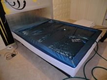 - Un materasso con imbottitura liquida non si presta alla deformazione, non perde la sua forma con un'attenta attitudine al rivestimento. E poiché il guscio in vinile è estremamente denso, la durata raggiunge i 15-20 anni.
