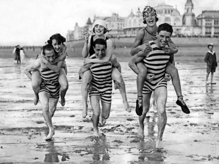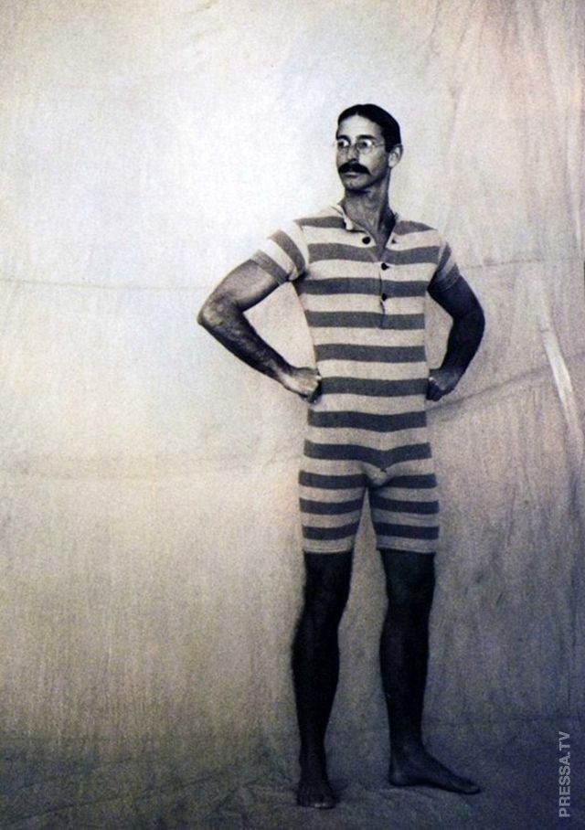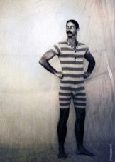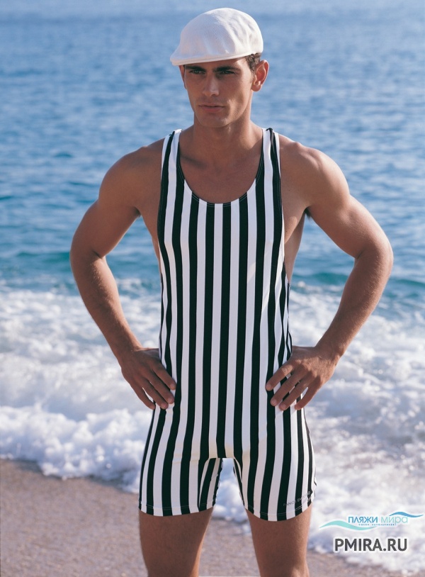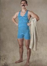 C'è stato un tempo in cui gli uomini nuotavano nudi. Questa tendenza è stata sostituita dal nuoto in biancheria intima. Per diversi secoli questo è stato considerato normale e naturale. I primi costumi da bagno da uomo sono apparsi nel XVIII secolo. Erano di lana, completamente chiusi, composti da pantaloni e camicia a maniche lunghe. Negli anni venti del secolo scorso, gli scomodi costumi da bagno di lana furono sostituiti da modelli a righe in maglia. Contemporaneamente al cambio di colore, la lunghezza dei pantaloni è diminuita e gli uomini sono apparsi con orgoglio in costumi da bagno a righe, con baffi lussuosi e un petto a "ruota". È così che le loro immagini sono state conservate nelle fotografie d'archivio.