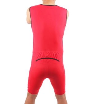 Body da wrestling realizzato in tessuto elastico lucido brillante con un'ampia spallina. Disponibile in tre colori. Secondo i produttori, può essere un vestito da spiaggia.