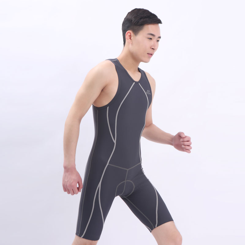 Ricorda uno stile sportivo, un costume da bagno piuttosto maschile nei colori nero, bianco e grigio. Dotato di pannelli laterali in rete elastica traspirante. In generale, dà l'impressione visiva di una maglietta e di un costume da bagno abbinato.