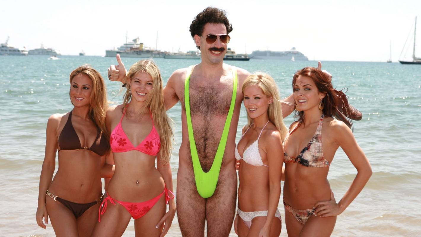 Ex attore Sasha Boron Cohen incarnava l'immagine di Borat in un audace costume da bagno in un ricco colore giallo-verde. Manchini ha lasciato un segno indelebile su generazioni.