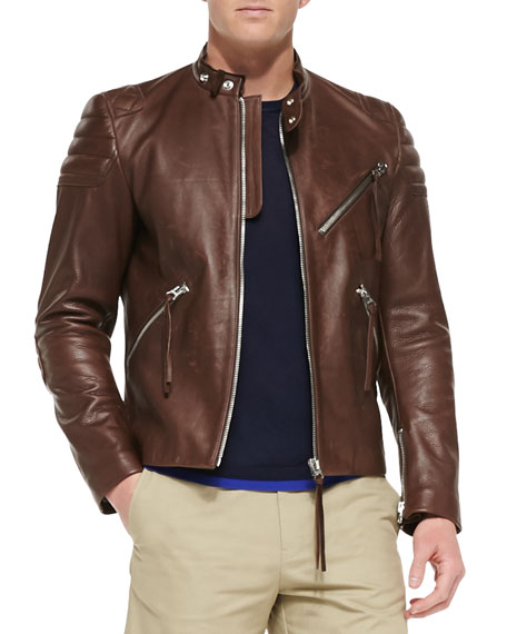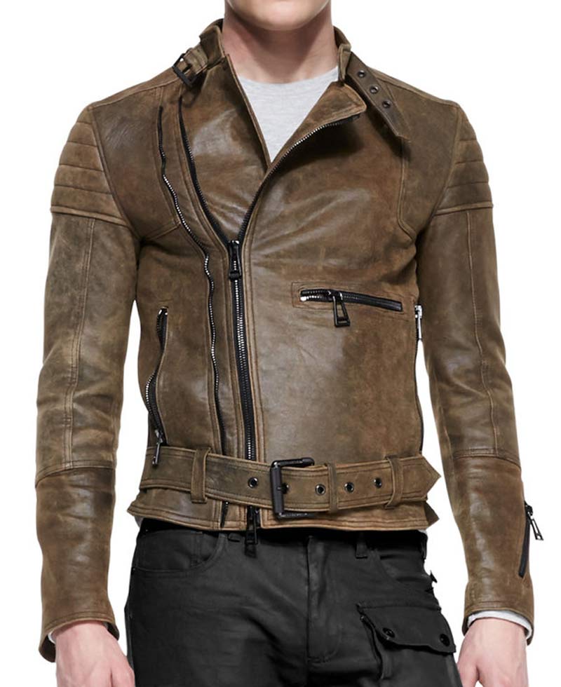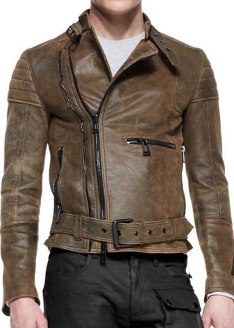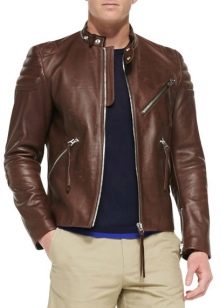 Giacca da motociclista si differenzia dagli altri per un taglio speciale. Non è mai lungo. Non ha cappuccio. Cerniere in metallo e finiture rudimentali completano il prodotto. Una giacca di pelle si indossa con jeans attillati, pantaloni della tuta.