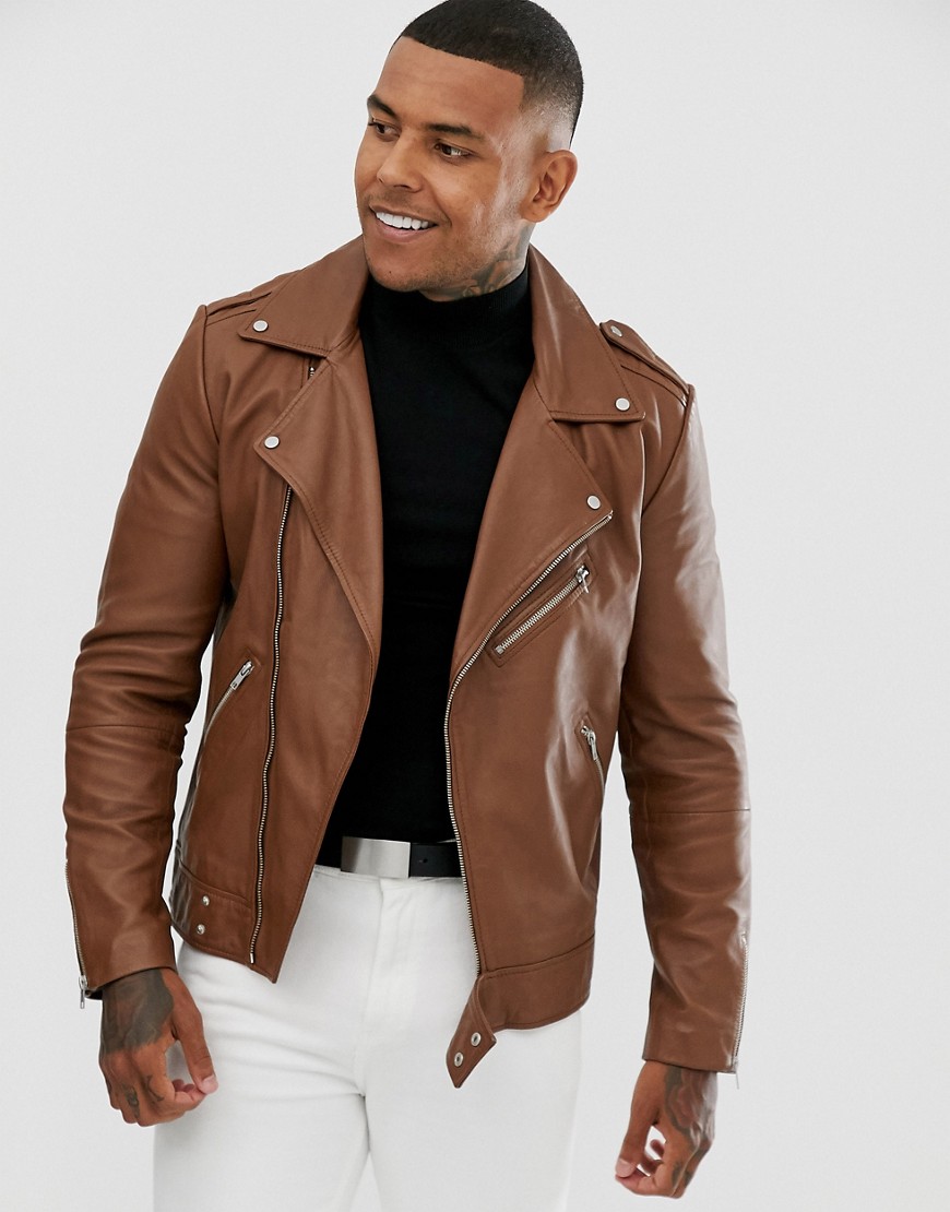 Come accennato in precedenza, una giacca di pelle marrone da uomo sta bene con tutto. Gli stili possono differire, ma non svolgono un ruolo significativo nella scelta di cose e accessori.