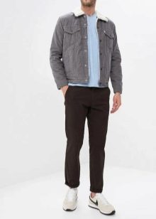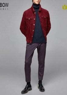 I vestiti di quasi tutte le combinazioni di colori sono adatti per una giacca di velluto a coste. È importante decidere il taglio. La combinazione di colori di maggior successo è con giacche dal taglio classico. Se questa è la tua opzione, puoi, ad esempio, indossare in sicurezza magliette di qualsiasi colore sotto la giacca. Le camicie di jeans sono adatte per questo capospalla, così come i pullover in maglia liscia, i maglioni in maglia grossa.