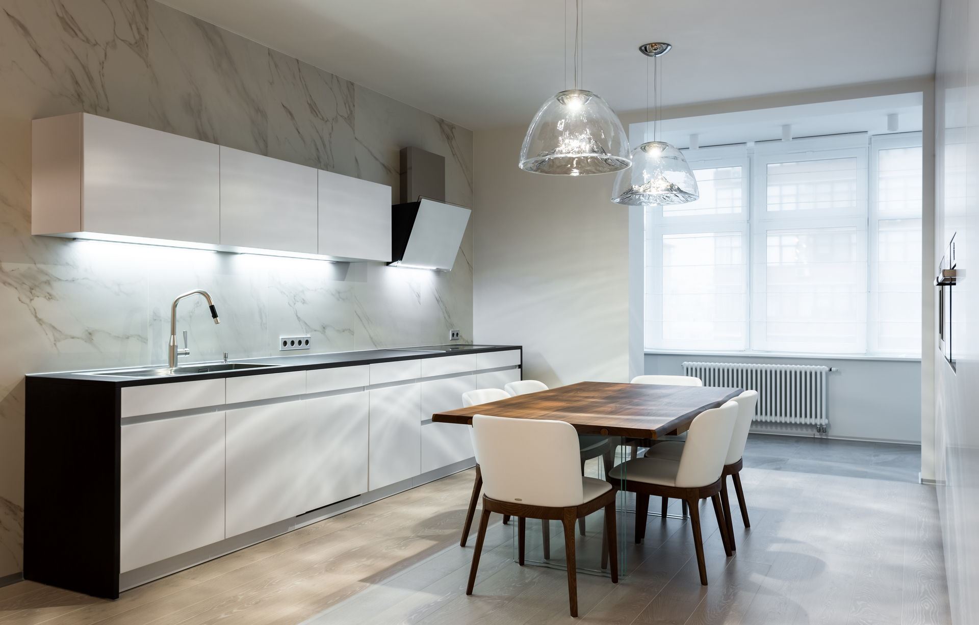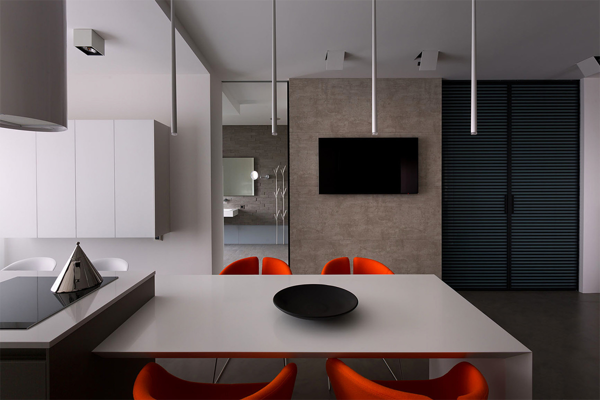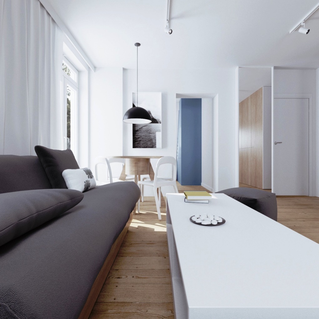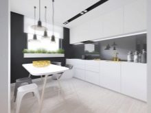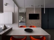 Per una famiglia senza figli, lo stile minimalista è adatto. Include una piccola quantità di mobili e oggetti di arredo. Ad esempio, una cucina può contenere un gruppo da pranzo, un set da cucina, un forno a microonde, un frigorifero.