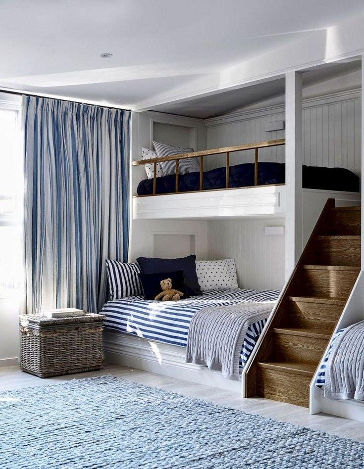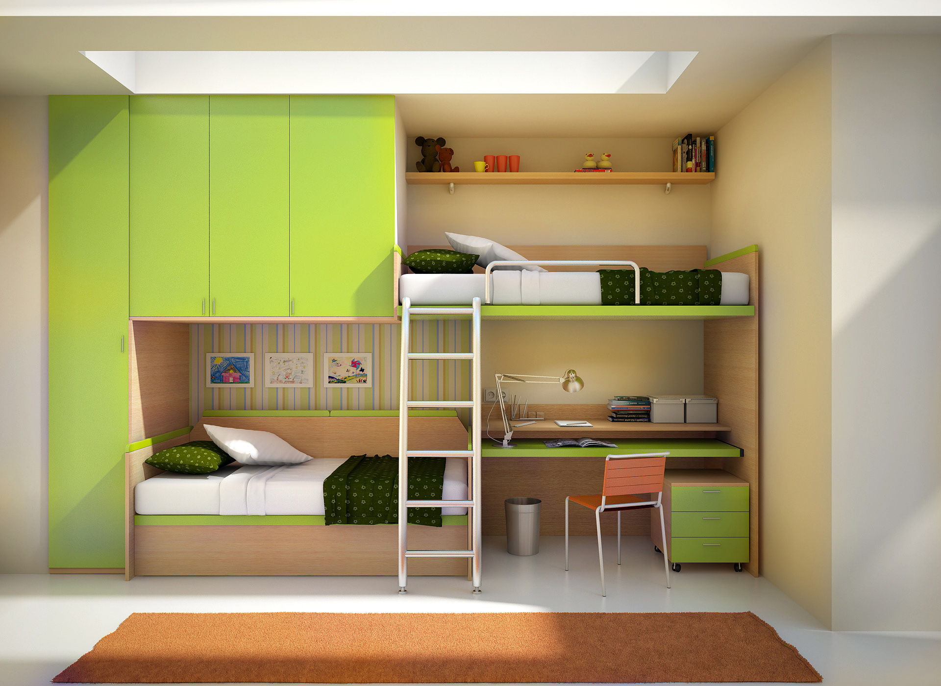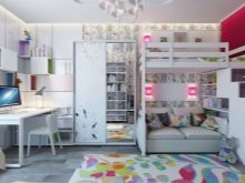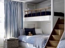Se hai due bambini, l'asilo dovrebbe avere due posti letto. Il problema in questo caso può essere risolto con un letto a castello. È importante che il ripiano superiore abbia un fermo che impedisca al bambino di cadere.