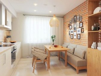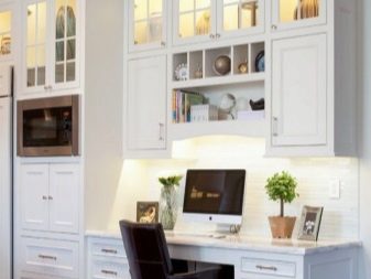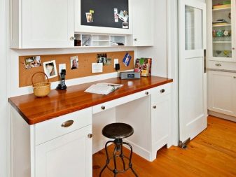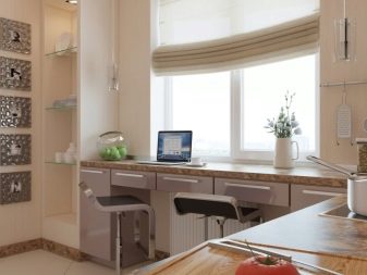 Inoltre, è possibile organizzare un posto di lavoro in cucina acquistando un grande tavolo. Tutto dipende dall'area della cucina stessa. Se le dimensioni ti consentono di acquistare divani lì, non dovresti negarti questa opportunità.