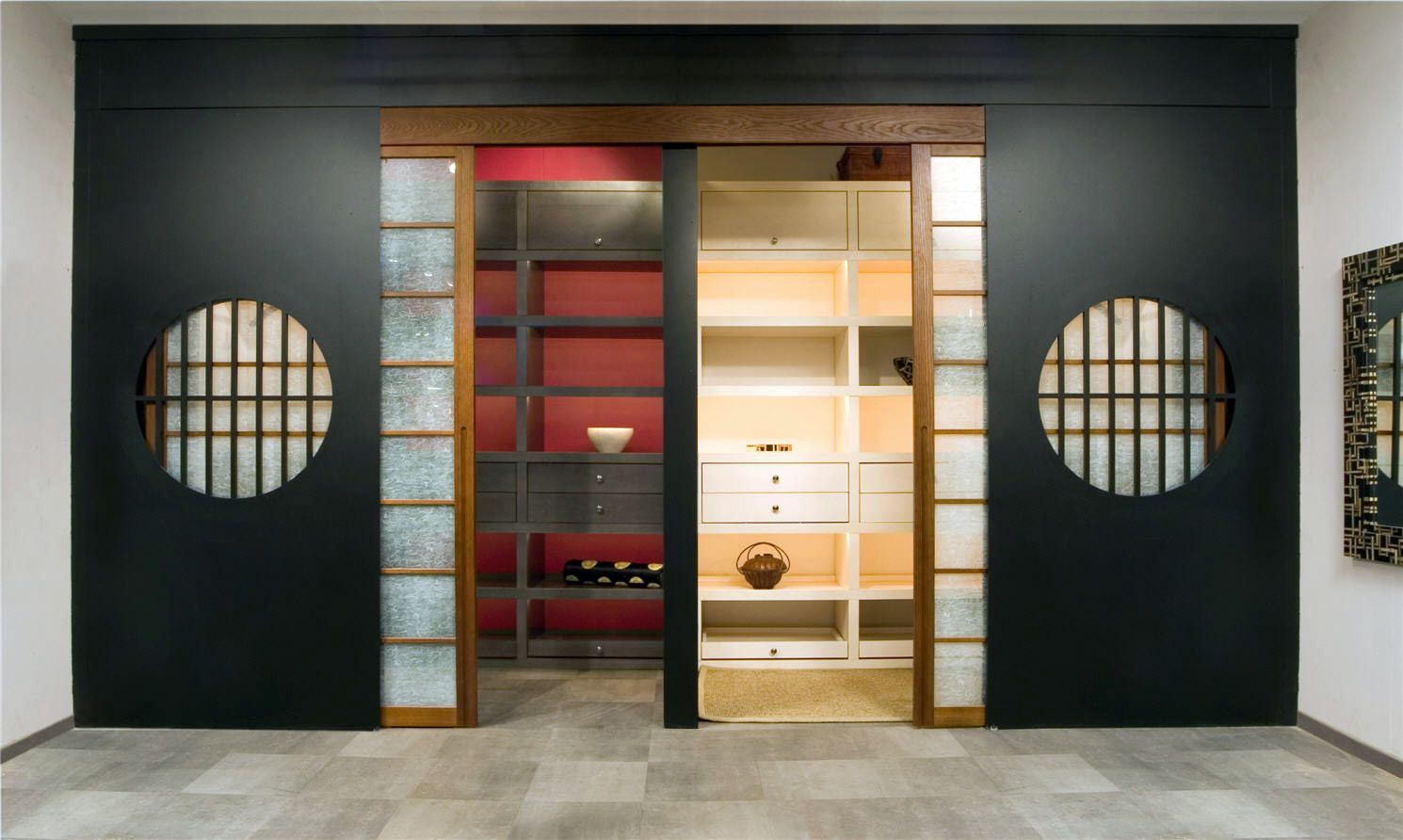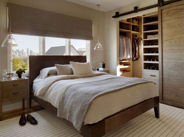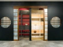 Se la camera da letto è subordinata allo stile High Tech o minimalismo, quindi sistemi scorrevoli discreti, tapparelle, tapparelle andranno bene. V giapponese sarà appropriato uno schermo o una parete divisoria in legno. Per classicismo si possono immaginare porte volumetriche decorate con dorature. V pop Art esso, in generale, può essere una porta luminosa, incollata con poster. Cioè, in ogni caso, dovrai prendere in considerazione lo stile generale e concentrarti su di esso.