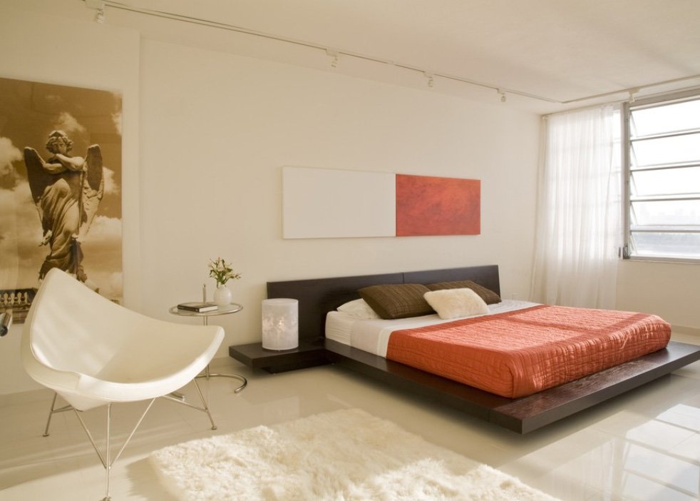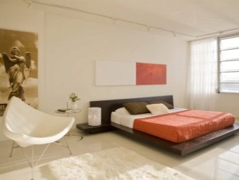 In questa direzione, viene data la preferenza alle moderne tecnologie.... Pertanto, sono ammesse cose diverse: un letto che scivola fuori dal muro, una TV incassata nel muro e uno spogliatoio, la cui porta si apre con una leggera pressione di un pulsante. I moderni apparecchi di illuminazione completano il quadro generale. Sulle finestre si possono vedere piuttosto persiane o tapparelle. Le tonalità nere, bianche e grigie sono le preferite dello stile. Ma un accento luminoso può essere presente anche nella camera da letto. Ad esempio, pareti bianche e un letto grigio possono essere completati da una poltrona rossa.