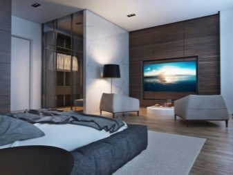 La stanza sarà confortevole, funzionale con la presenza di rigorose linee geometriche... C'è tutto per un passatempo confortevole. I toni calmi possono essere completati da accenti contrastanti. Non stupitevi se, con uno sfondo grigio generale, appare improvvisamente uno spogliatoio dietro il muro rosso. Questo stile può essere applicato a qualsiasi spazio. Dopotutto, la cosa principale qui è la presenza degli oggetti più importanti e un'illuminazione confortevole.