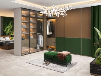Molto spesso, la camera da letto è dotata di uno spogliatoio. Questo può essere fatto già a spese della dispensa o della nicchia esistente, oppure può essere organizzato utilizzando la zonizzazione. In ogni caso, il design di una camera da letto con spogliatoio dovrebbe essere attentamente studiato.