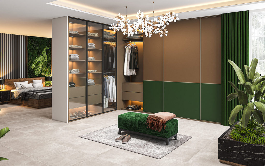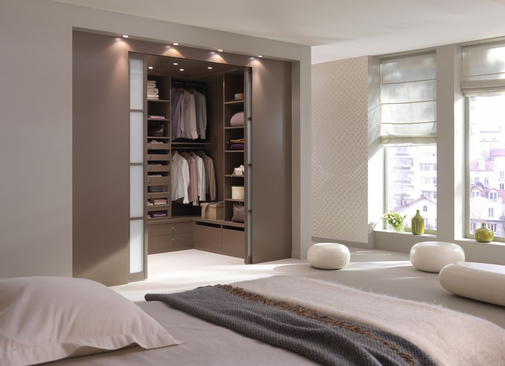 A seconda della disposizione della camera da letto o del metodo di suddivisione in zone scelto, l'ingresso all'armadio può essere progettato come: