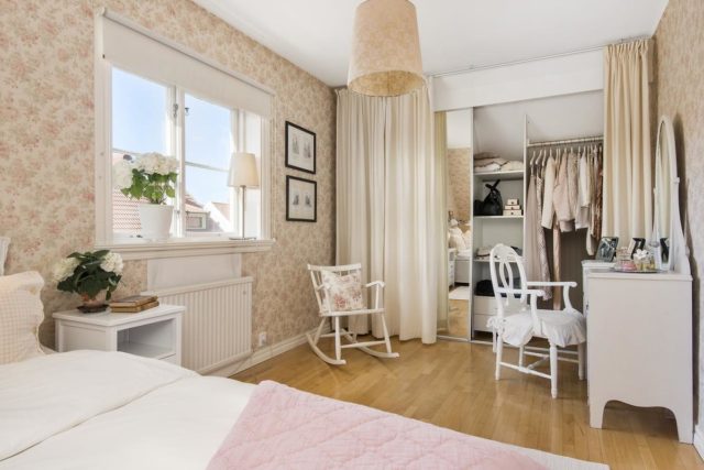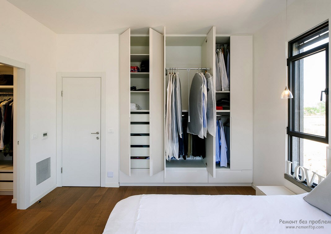 Ma soprattutto, ti daranno esempi di quale potrebbe essere il design di una camera da letto grande e piccola, in cui devi trovare un posto per uno spogliatoio.