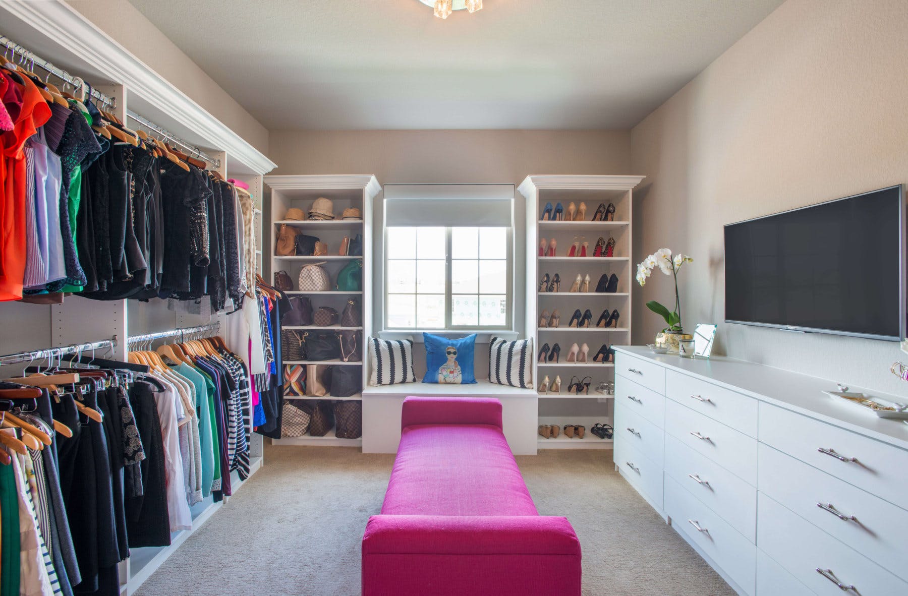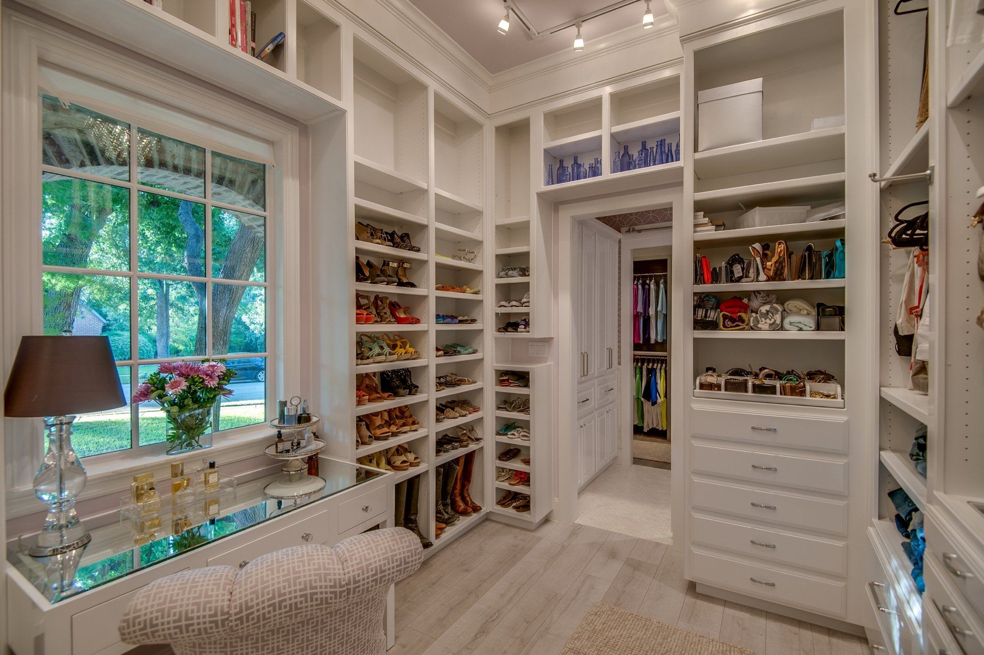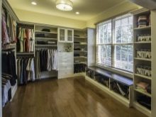 Uno spogliatoio con finestra può essere posizionato adiacente alla camera da letto, al bagno o a qualsiasi altra stanza della casa, dove sarà conveniente per i proprietari andare per le cose necessarie.