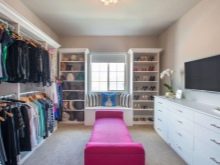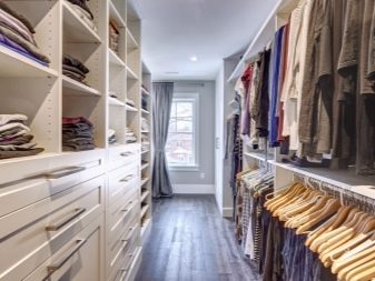 Qualitativamente e multifunzionalmente, puoi organizzare qualsiasi stanza per un guardaroba. Entrambe le opzioni con una piccola area e stanze molto spaziose con una o anche più finestre sembrano vantaggiose.