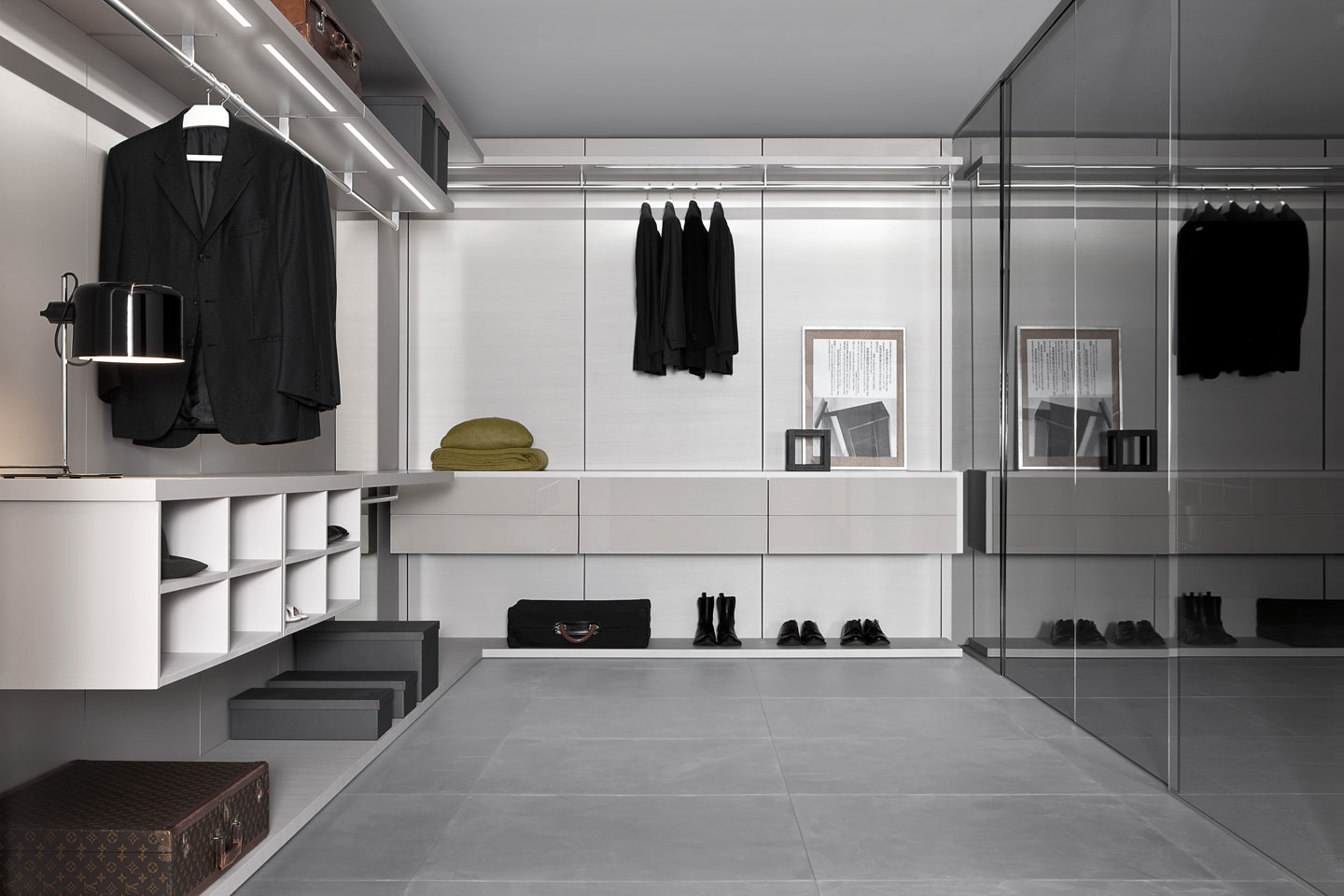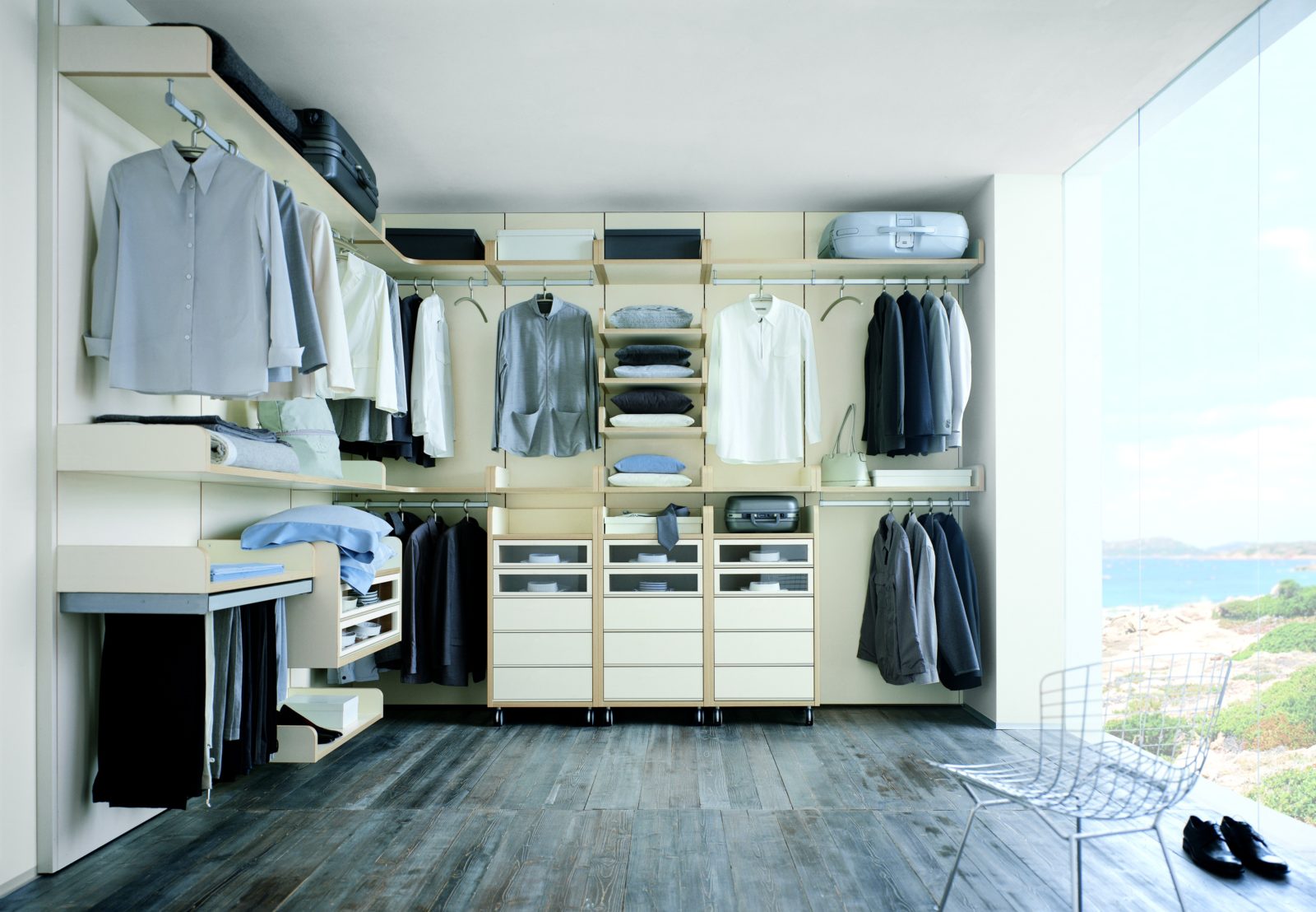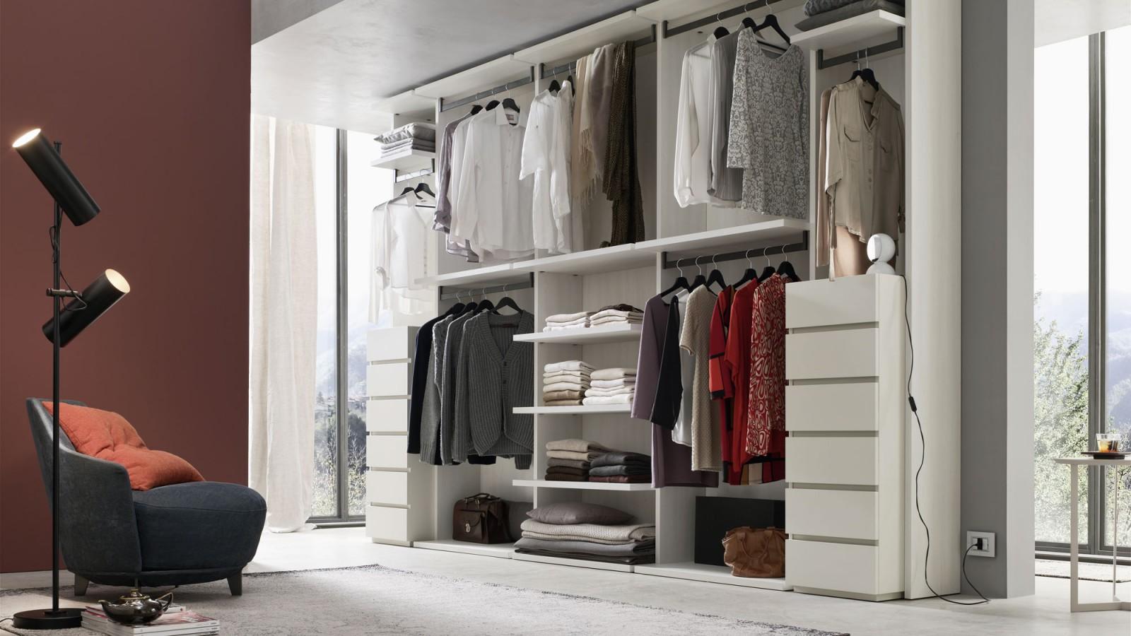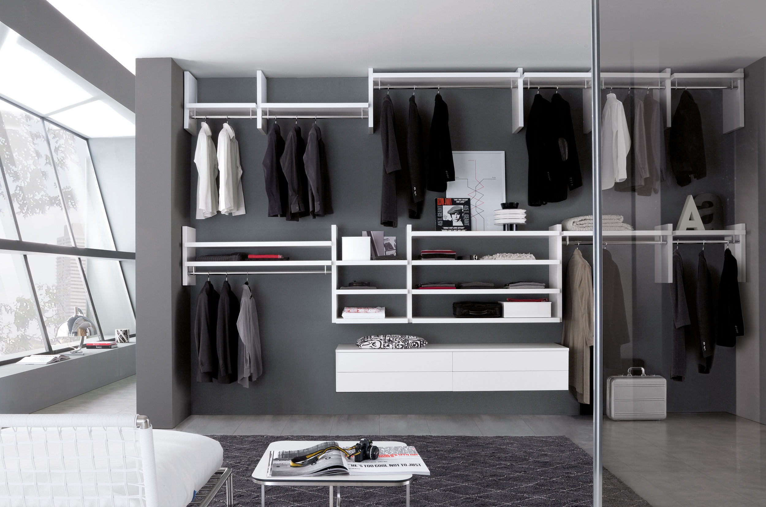 I sistemi di guardaroba a parete sono montati su guide speciali direttamente alla parete. I sistemi di archiviazione a parete sono importanti da utilizzare per i camerini in cui lo spazio è molto ridotto.
