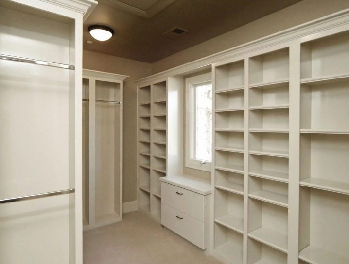 Ad oggi, i produttori producono sistemi già pronti e opzioni prefabbricate per riempire gli armadi. Quasi tutti possono essere collocati in uno spogliatoio con finestra. È importante scegliere sistemi già pronti se sono ideali per le dimensioni e il design della stanza.