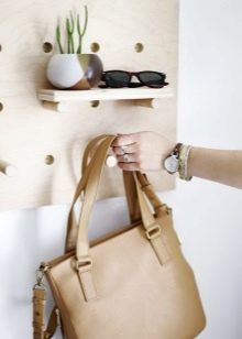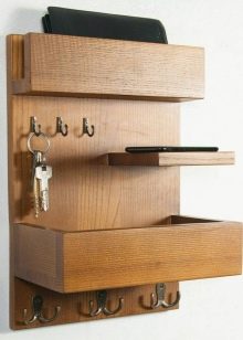 L'ultima opzione è prodotta sotto forma di una struttura muraria, che contiene diverse partizioni disposte ad angolo. È conveniente riporre chiavi, accessori o altri piccoli oggetti domestici sugli scaffali.