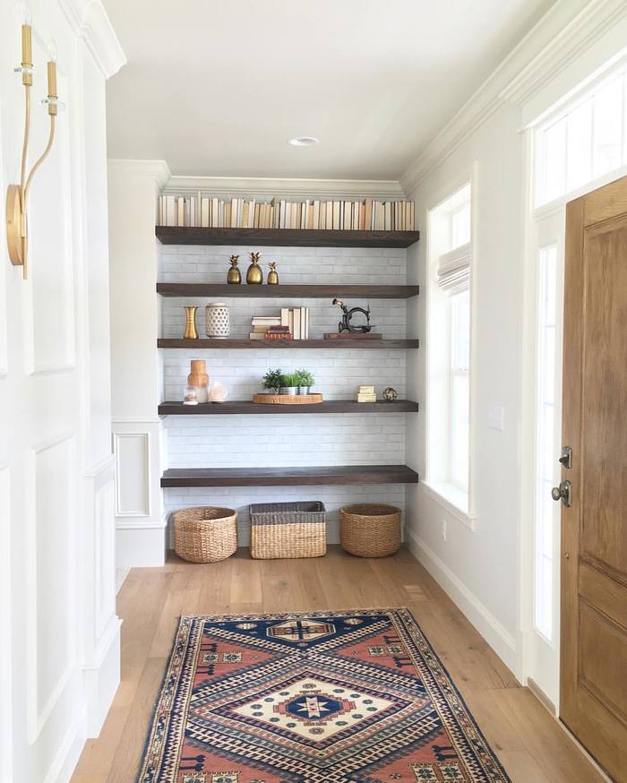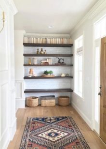 I ripiani possono essere utilizzati per vari articoli: per scarpe, cappelli o altri cappelli, libri, cosmetici. I grandi corridoi sono in grado di ospitare mensole su cui è possibile inserire elementi decorativi per decorare la stanza.