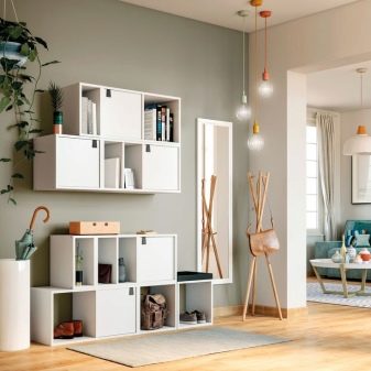 Inoltre, vale la pena considerare l'altezza della struttura. Se lo si desidera, i sistemi di archiviazione modulari possono essere dotati di ganci per vestiti o chiavi.