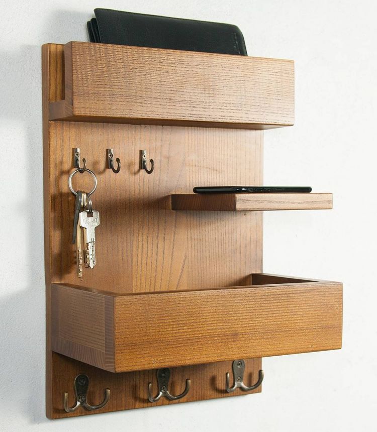 - Per chiavi. Hanno un tipo di costruzione chiuso e sono di dimensioni compatte. I portachiavi sembrano attraenti in qualsiasi interno. A volte usano scaffali compatti vicino allo specchio per riporre le chiavi se la stanza è piccola. Questa categoria comprende anche scaffali per profumi e altri piccoli oggetti.