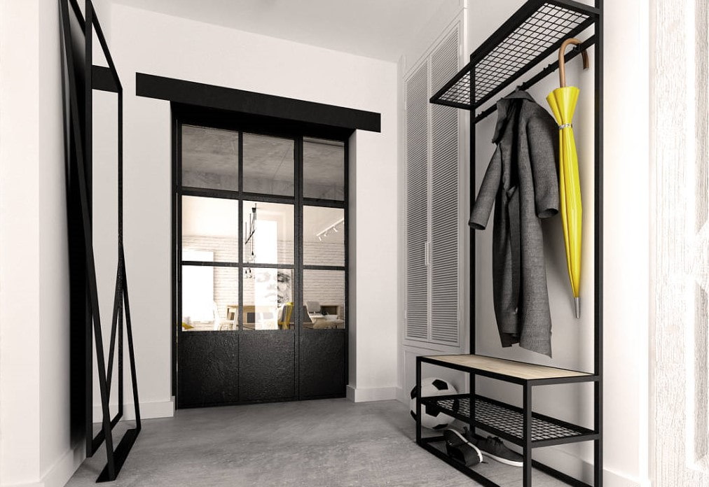 - Corridoio moderno preferisce semplici organizzatori di metallo.